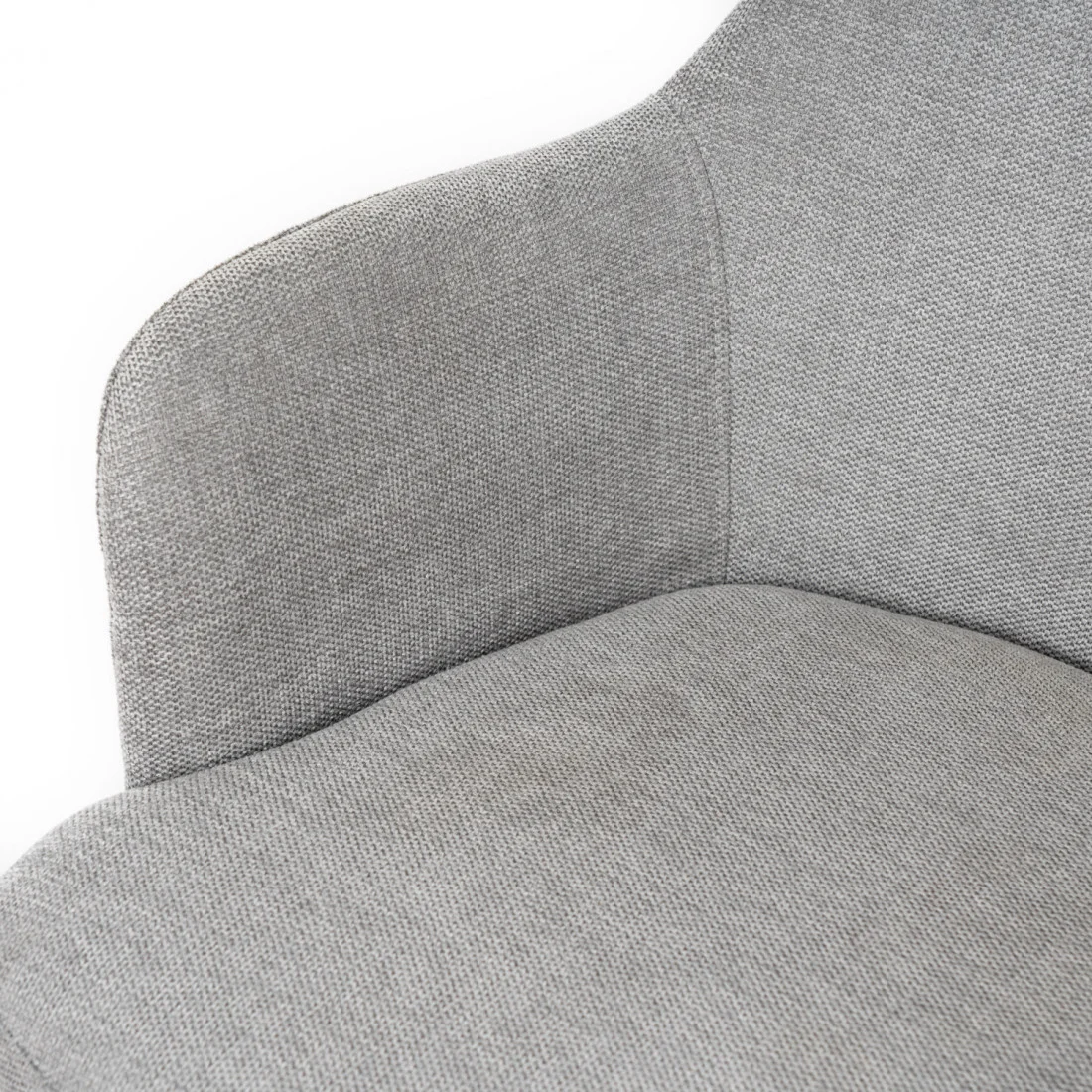Su tapizado en un tejido gris claro, ofrece un toque de suavidad y confort que invita a sentarse.