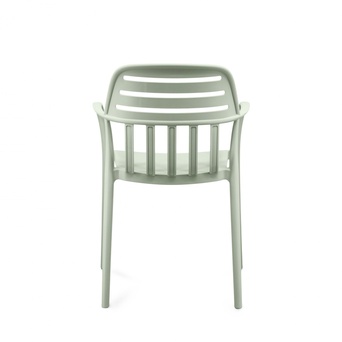 La silla DESIREE está fabricada en polipropileno resistente y presenta un diseño atemporal visualmente atractivo.