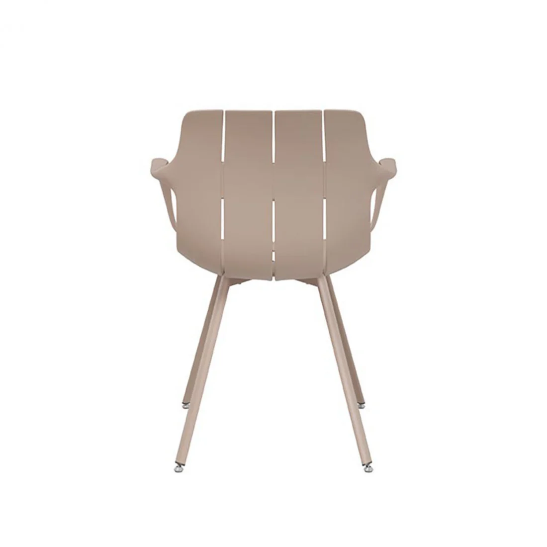 El taburete LOGAN está tapizado en tela color taupe de poliéster 100%, que contrasta elegantemente con su estructura metálica negra.