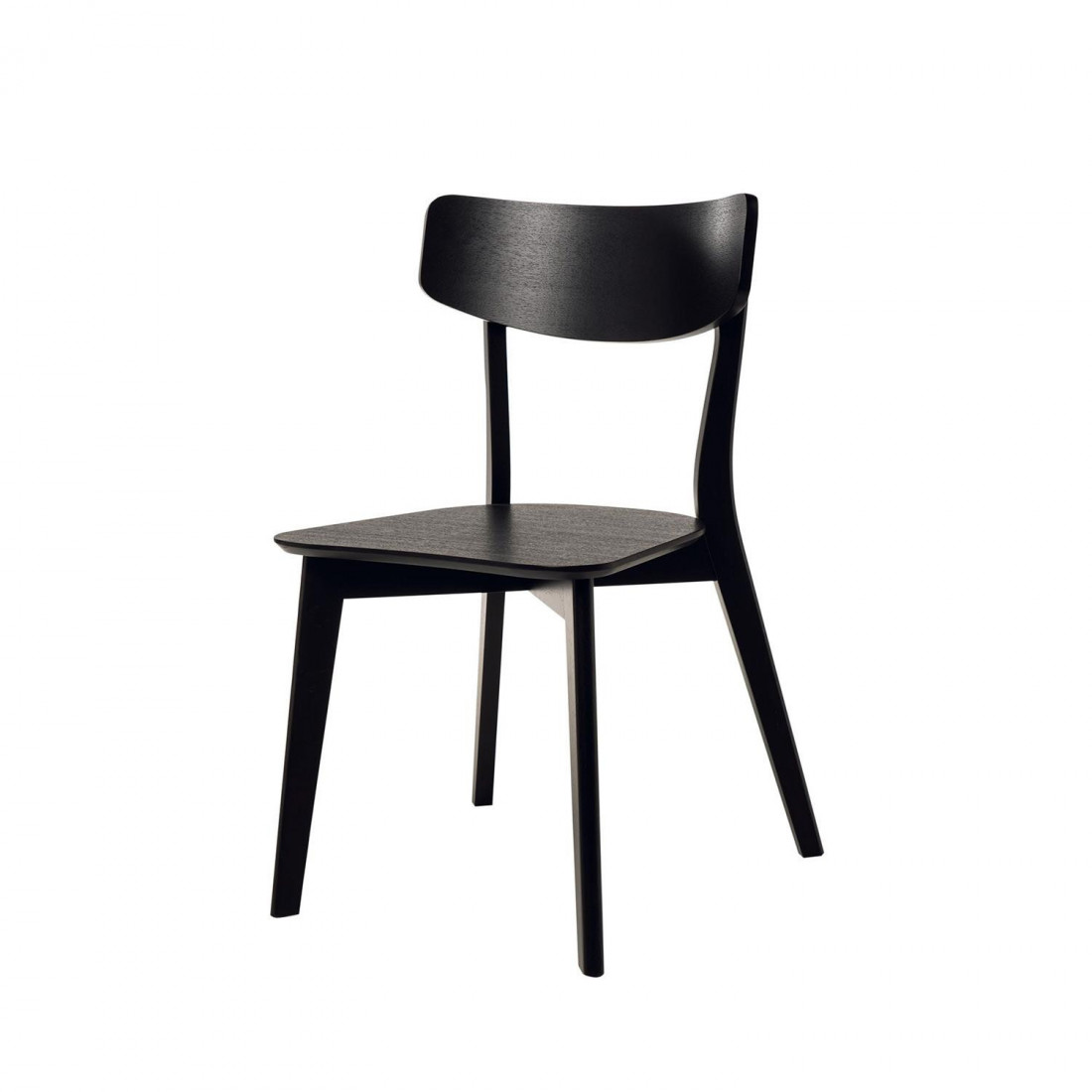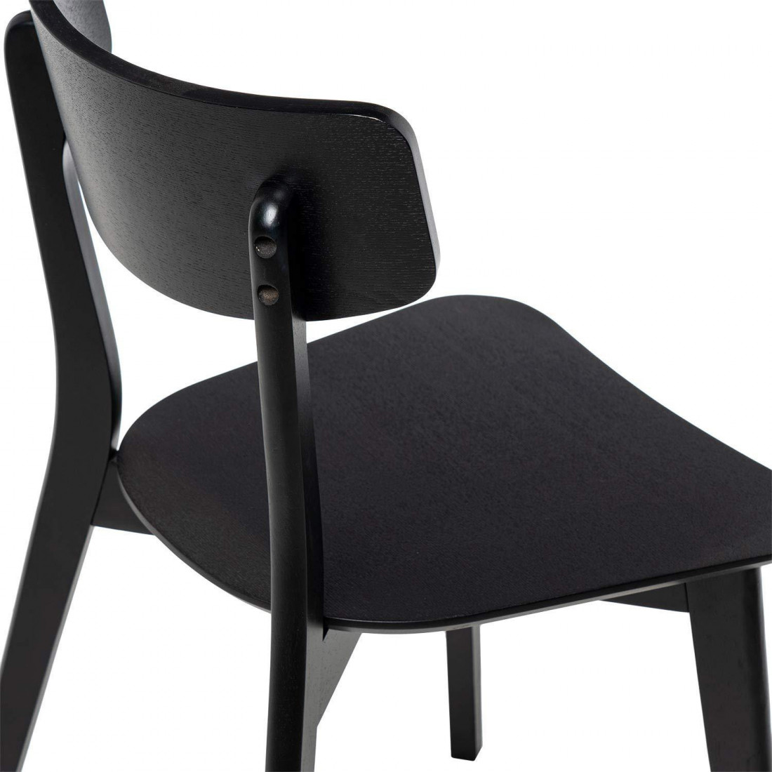 Fabricada con madera de hevea y lacada en un sofisticado color negro, esta silla presenta líneas limpias y curvas suaves que realzan su silueta refinada.