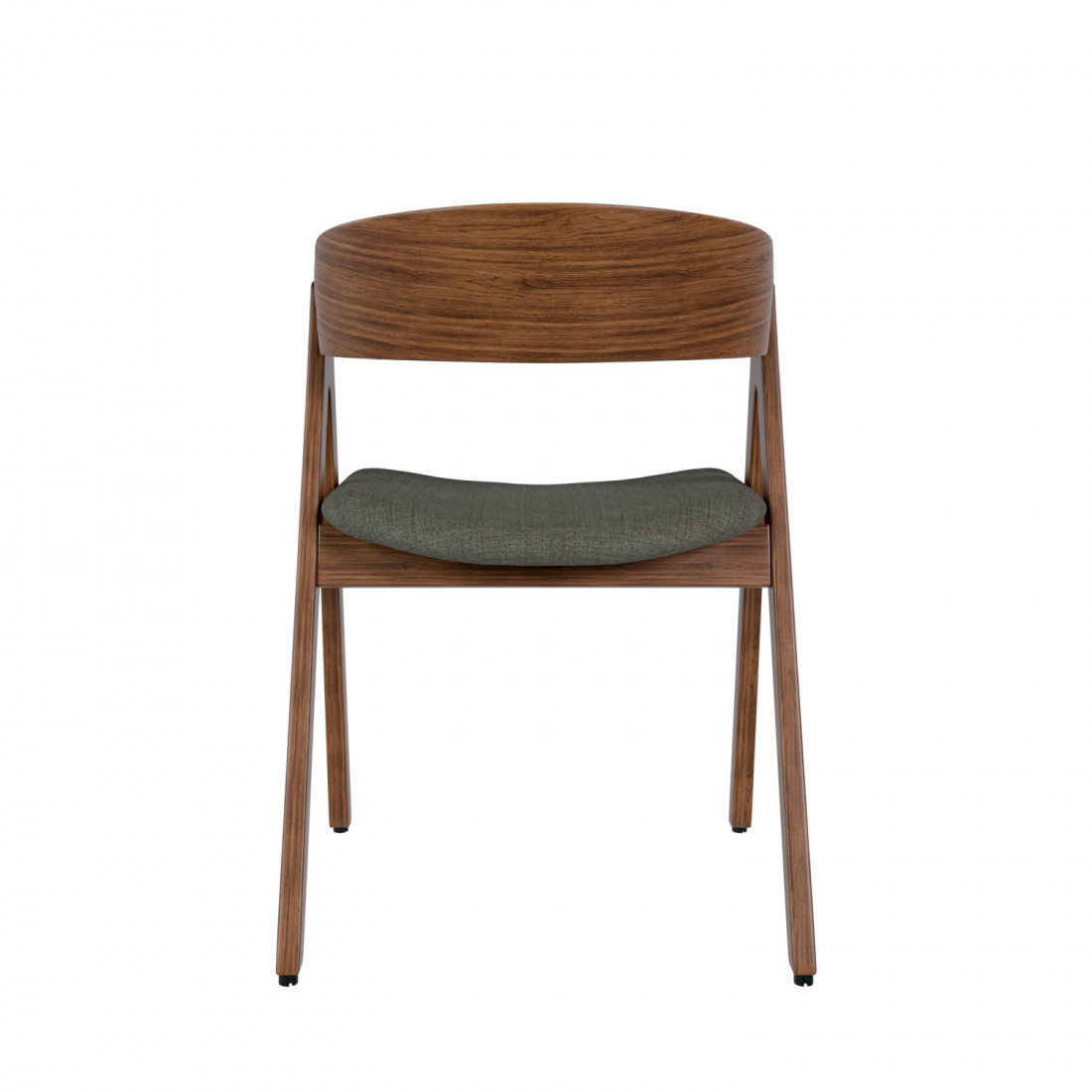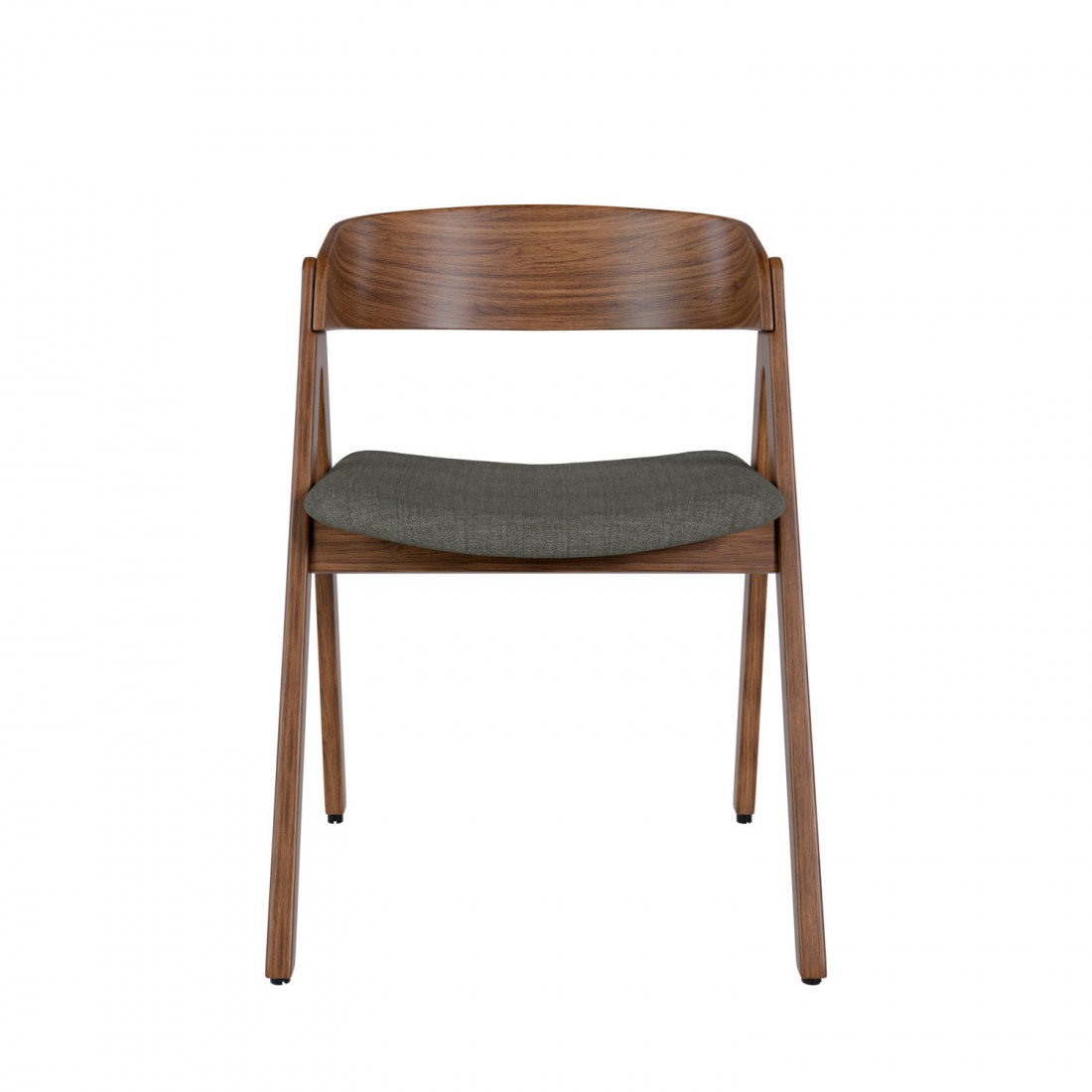 Elegante silla de madera de hevea y asiento tapizado en tela de color gris oscuro (100% poliéster).