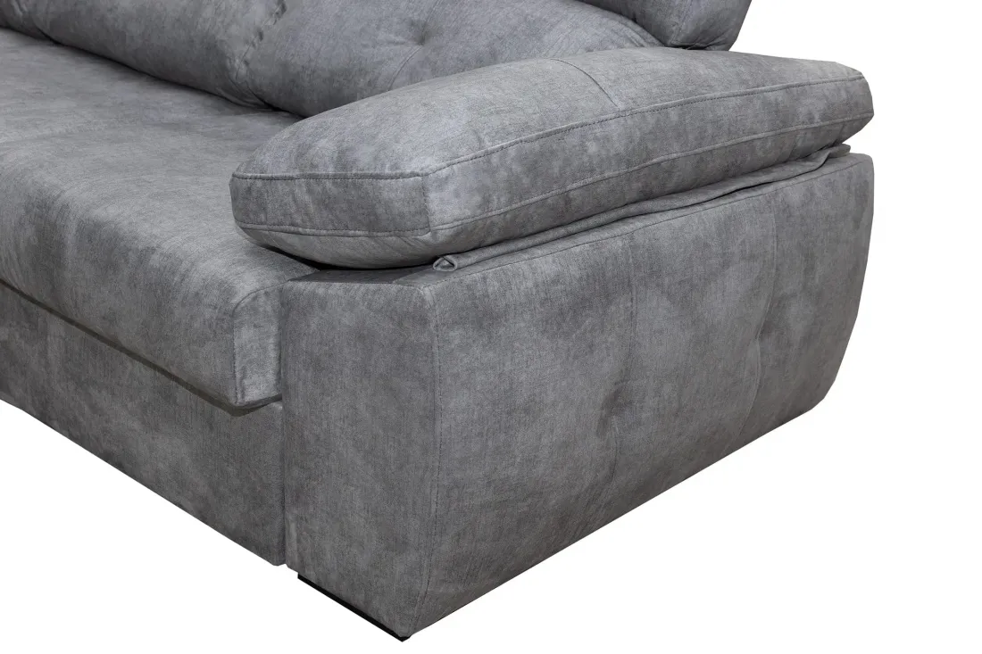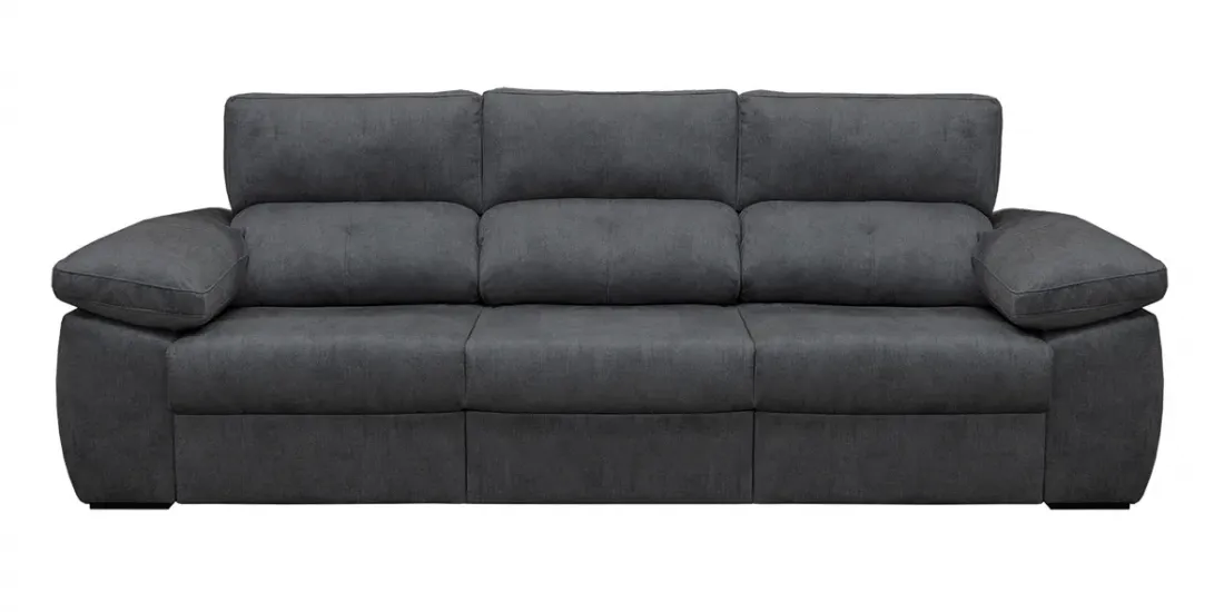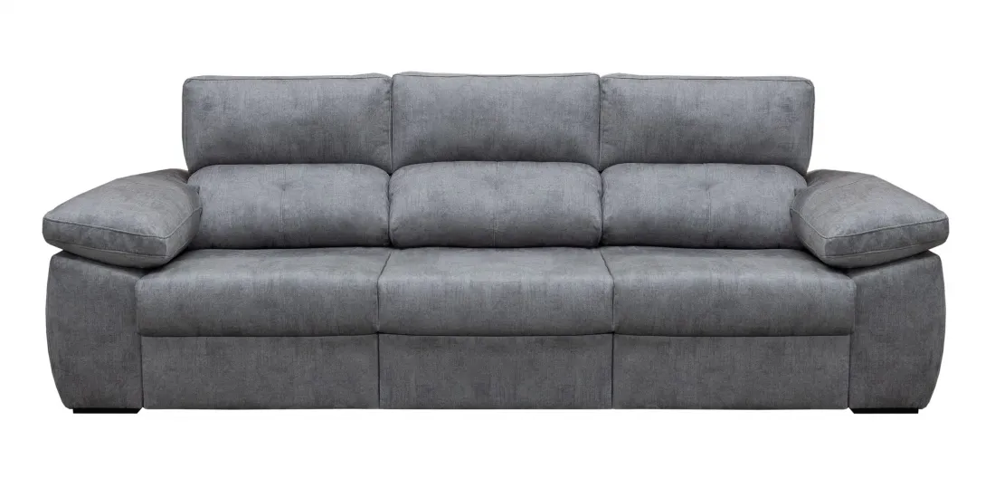 El sofá 3 plazas 3 asientos Gredos: largo de 240cm de diseño actual y comodísimo. Incluye los respaldos reclinables y los asientos de muelles ensacados deslizantes de carro con apoyo en el suelo (se convierte en cama).