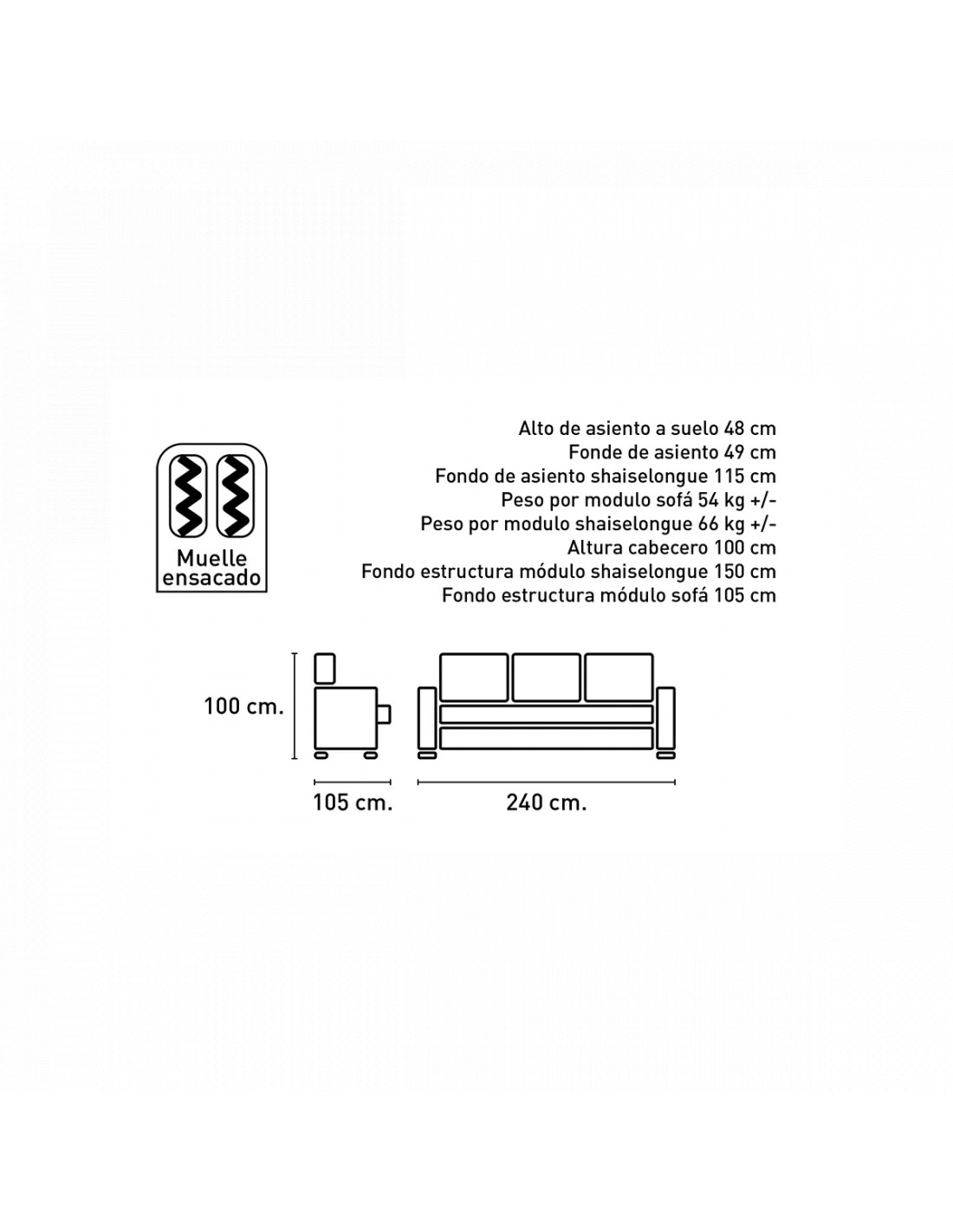 Sofá Pirineos XXL 3 plazas 3 asientos