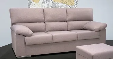 Sofá de cuatro plazas con tres asientos fijo modelo Rubén, con una gran relación calidad-precio. Se tapiza en tela antimanchas y se envía de forma rápida.