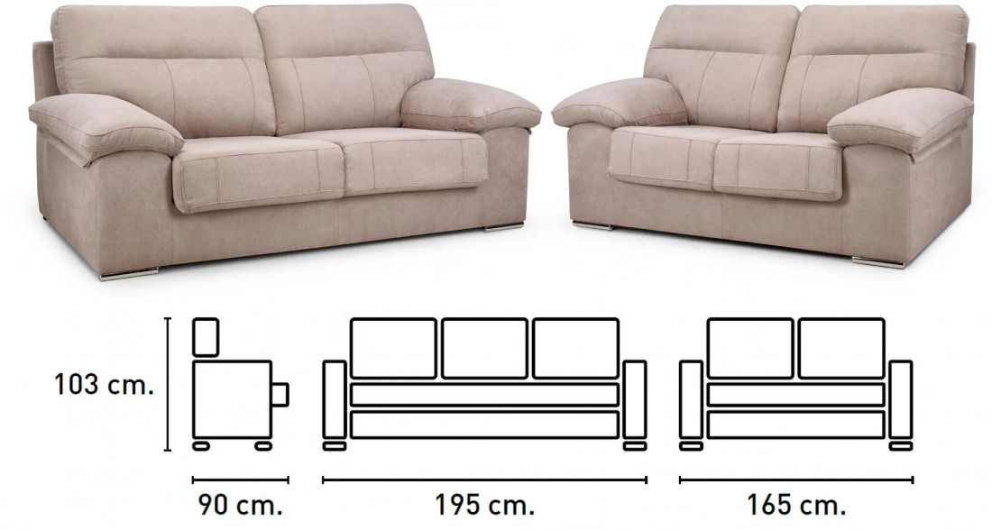 La serie Robert incluye este sofá de 2 plazas con 170 cm. con un diseño elegante, cómodo y muy moderno gracias a sus patas metálicas. Disponible en tapizado antimanchas edi camel, marengo o plata