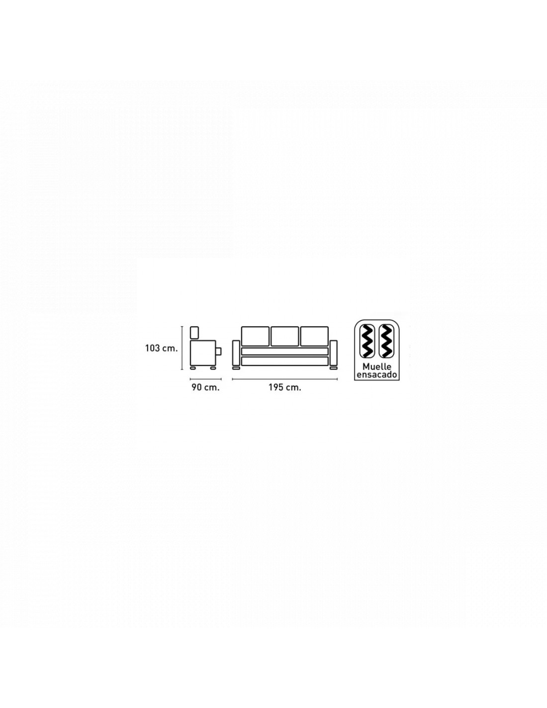 3 pl: ancho 195 cm, alto 103 cm, fondo 90 cm.