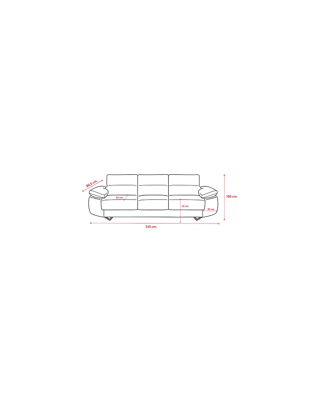 - Alto 100 cm, ancho 245 cm, fondo 80,5 cm