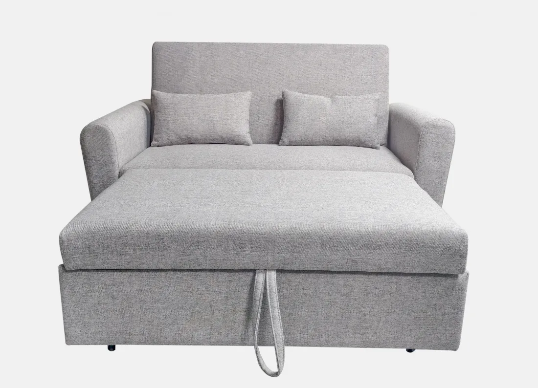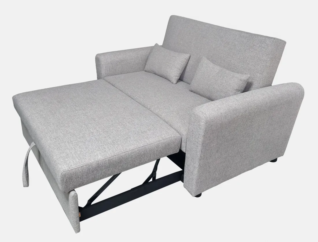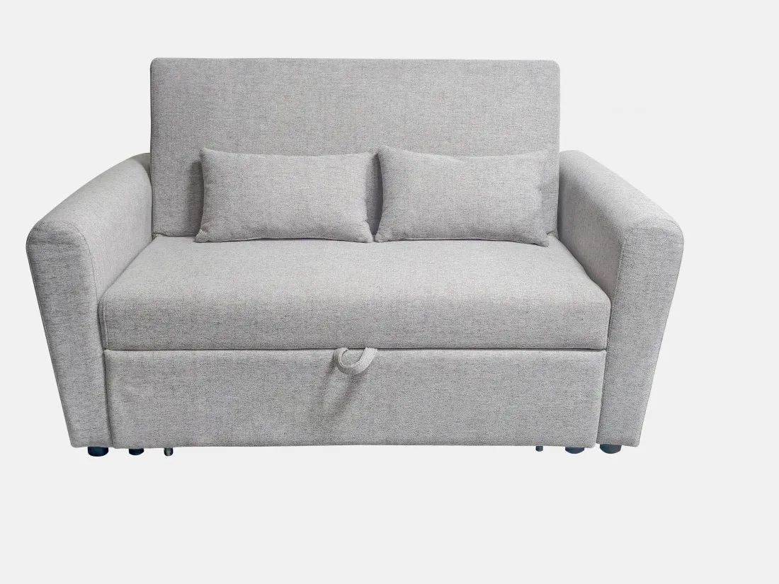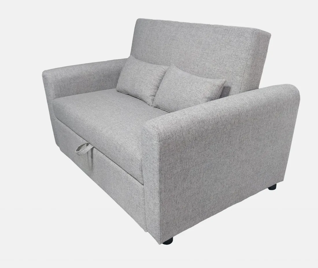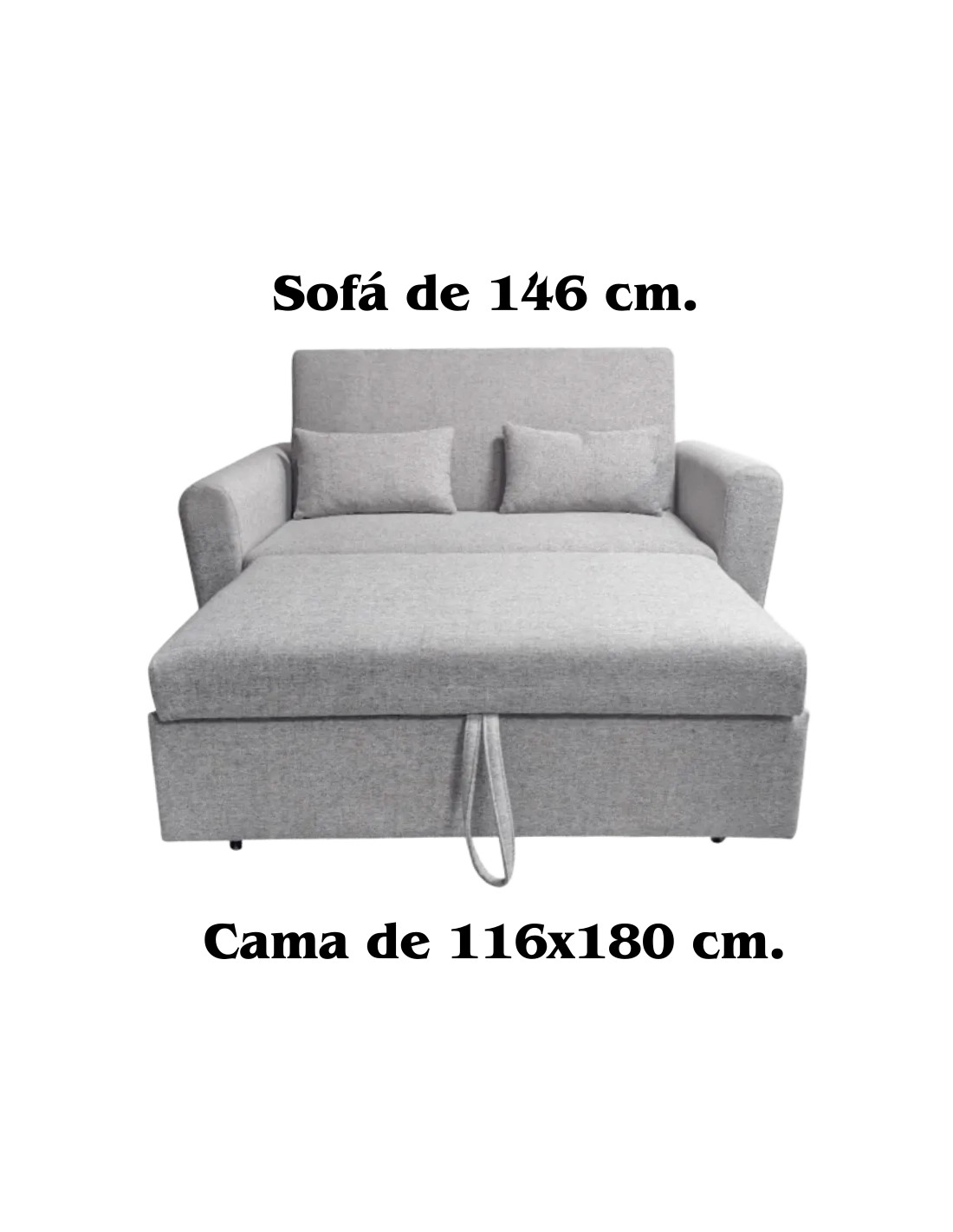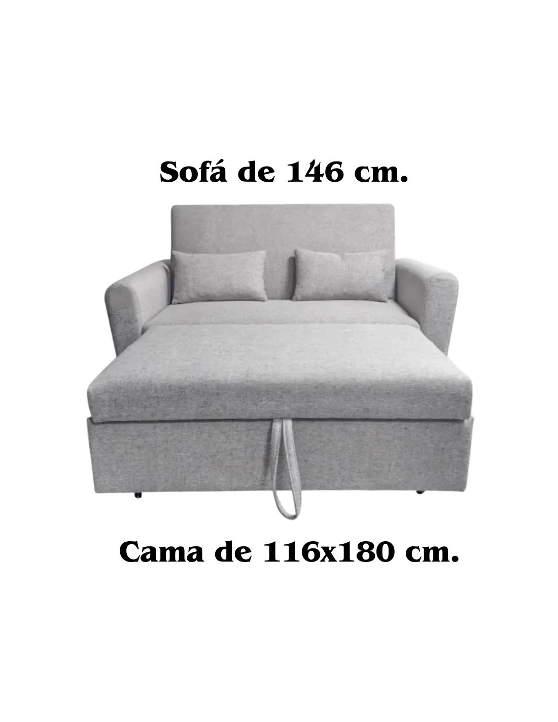 Tapizado en tela color gris, incluye dos cojines decorativos. Comodidad, funcionalidad y diseño moderno en un solo mueble. Ideal para quienes necesitan una cama extra sin renunciar al estilo.