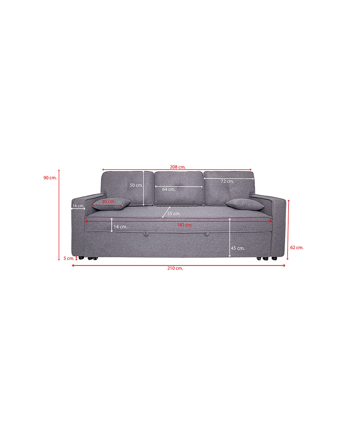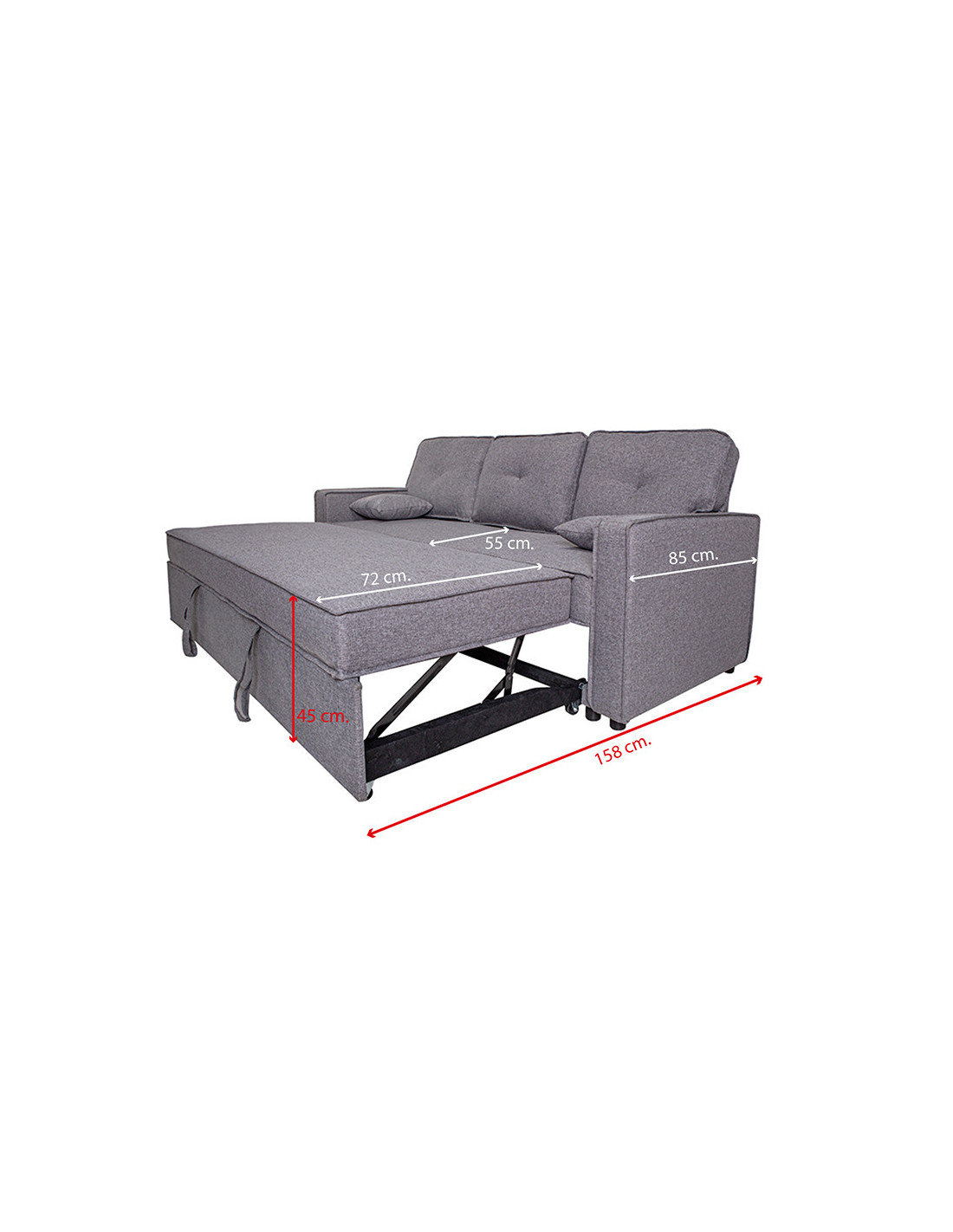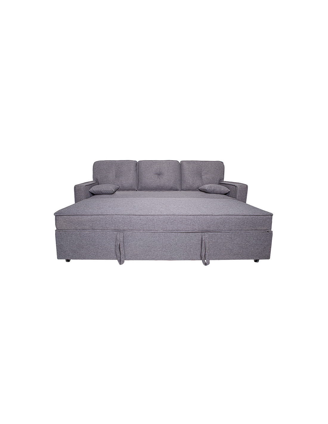 El sofá cama Dax de 3 plazas 3 asientos con brazos mide 210cm y es un modelo perfecto si necesitas una cama extra para tus invitados. Tiene un sistema de apertura cama inferior extraíble. Disponible en tela malmo color gris.