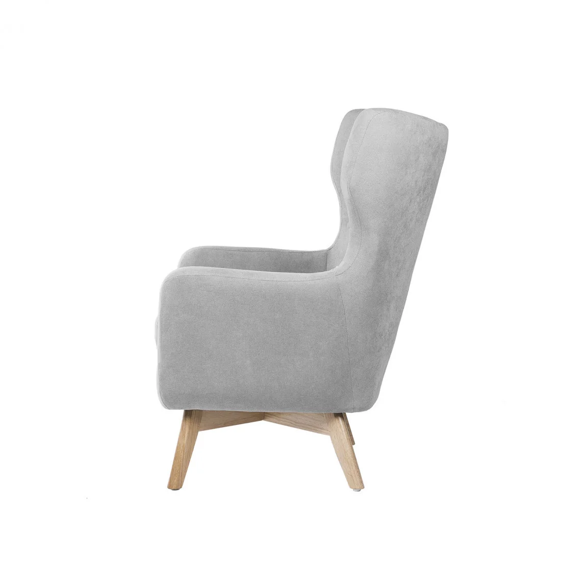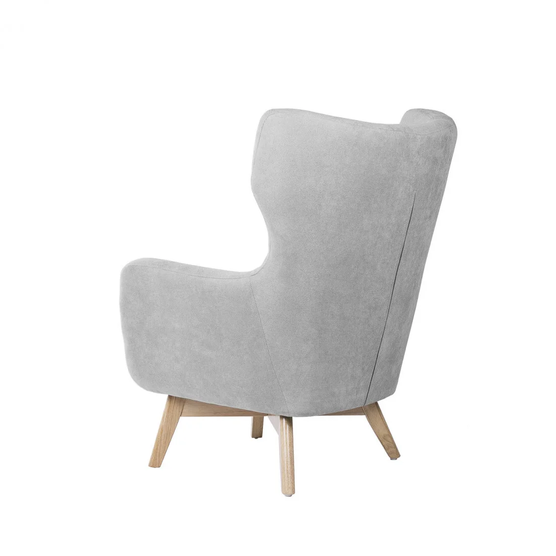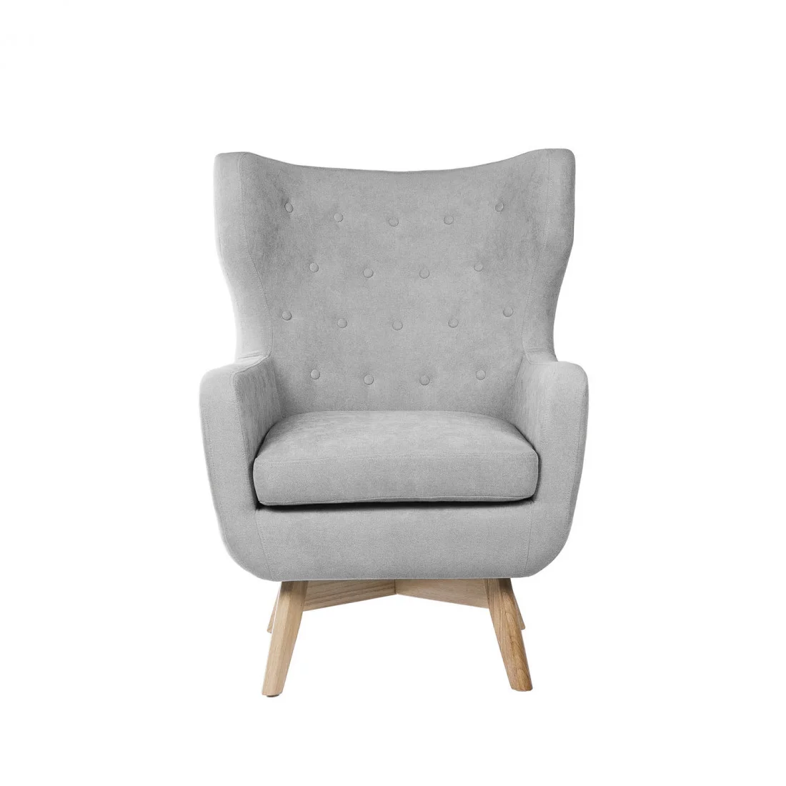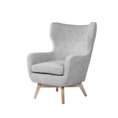 La butaca LISBOA está diseñada para aportar confort y estilo a cualquier espacio del hogar. Su estructura se apoya sobre patas de madera ligeramente inclinadas, con un acabado en color natural que resalta la calidez del diseño.