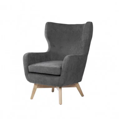 Con su original estructura de patas de madera, ofrece una experiencia acogedora que se adapta perfectamente a salones, dormitorios o rincones de lectura.