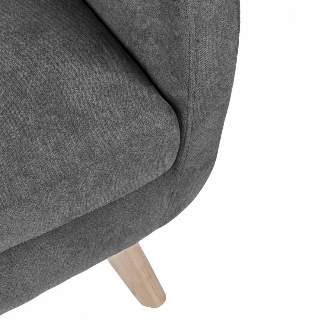 La butaca LISBOA está diseñada para aportar confort y estilo a cualquier espacio del hogar. Su estructura se apoya sobre patas de madera ligeramente inclinadas, con un acabado en color natural que resalta la calidez del diseño.