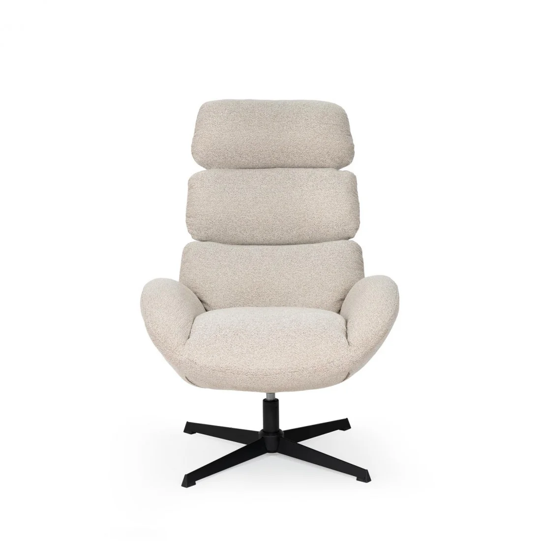 Tapizada en un tejido suave disponible en tonos beige, gris y taupe, se adapta fácilmente a diferentes estilos decorativos, desde espacios contemporáneos hasta ambientes más clásicos o relajados. Su base metálica negra en forma de estrella no solo aporta estabilidad, sino que integra un mecanismo giratorio de 360º, que añade dinamismo y funcionalidad al conjunto.
