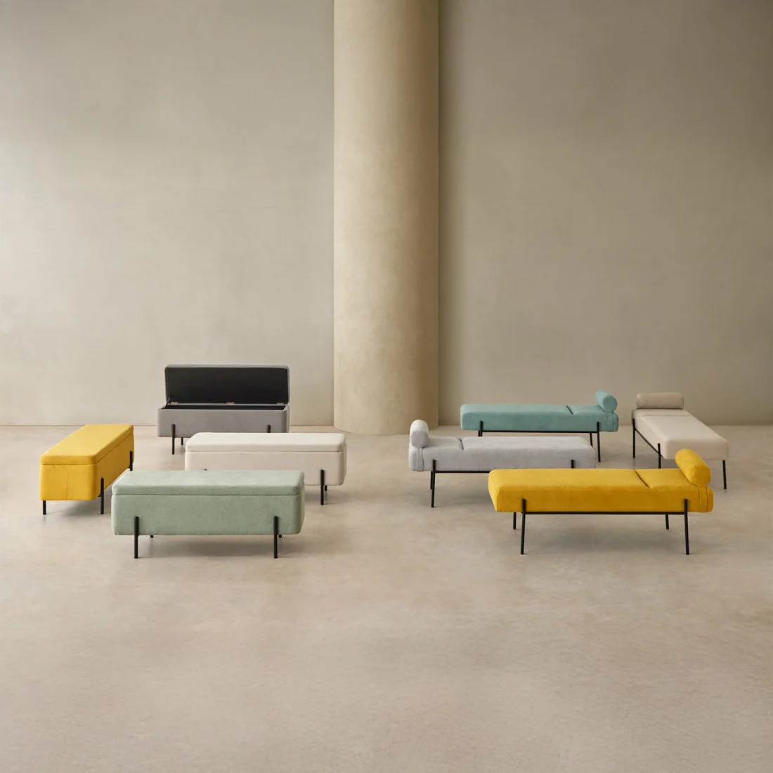 Elegante y funcional, la banqueta VIENA combina simplicidad y diseño con mucha personalidad. Incorpora un práctico espacio de almacenaje oculto bajo la tapa, ideal para mantener el orden sin perder estilo.