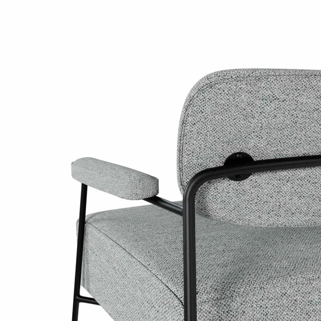Su asiento amplio proporciona un confort excepcional, mientras que la estructura de metal negro añade un toque contemporáneo y sofisticado, convirtiéndola en una pieza versátil que se adapta perfectamente a cualquier tipo de estancia.