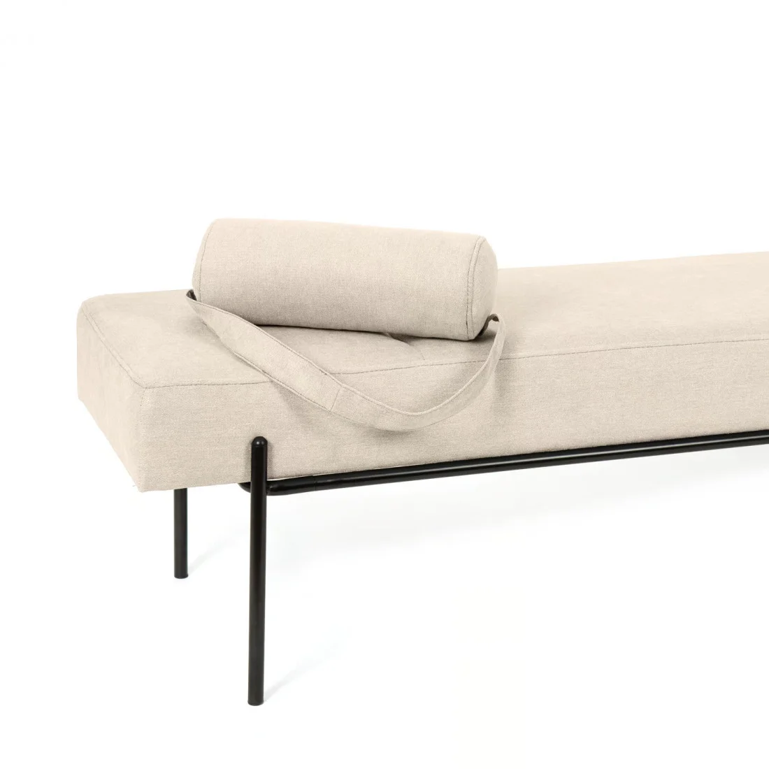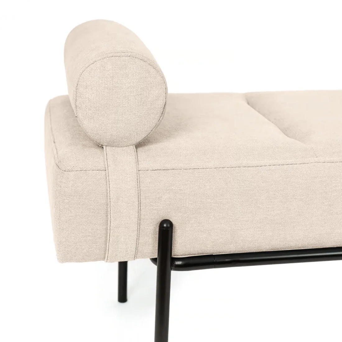 Cuenta con un cojín integrado que proporciona un nivel superior de confort, ideal para momentos de descanso o como apoyo funcional en áreas de paso. Sus patas de metal lacado no solo aportan estabilidad y resistencia, sino que también suman un toque de elegancia contemporánea al conjunto.