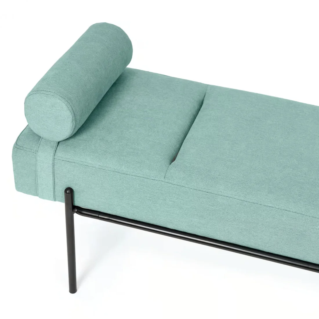 Cuenta con un cojín integrado que proporciona un nivel superior de confort, ideal para momentos de descanso o como apoyo funcional en áreas de paso. Sus patas de metal lacado no solo aportan estabilidad y resistencia, sino que también suman un toque de elegancia contemporánea al conjunto.