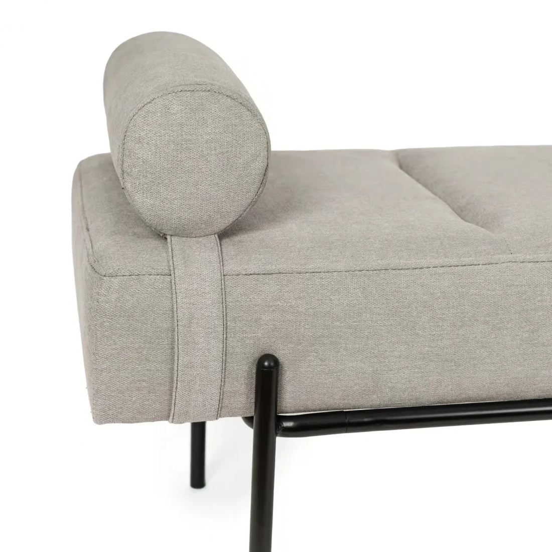 Cuenta con un cojín integrado que proporciona un nivel superior de confort, ideal para momentos de descanso o como apoyo funcional en áreas de paso. Sus patas de metal lacado no solo aportan estabilidad y resistencia, sino que también suman un toque de elegancia contemporánea al conjunto.