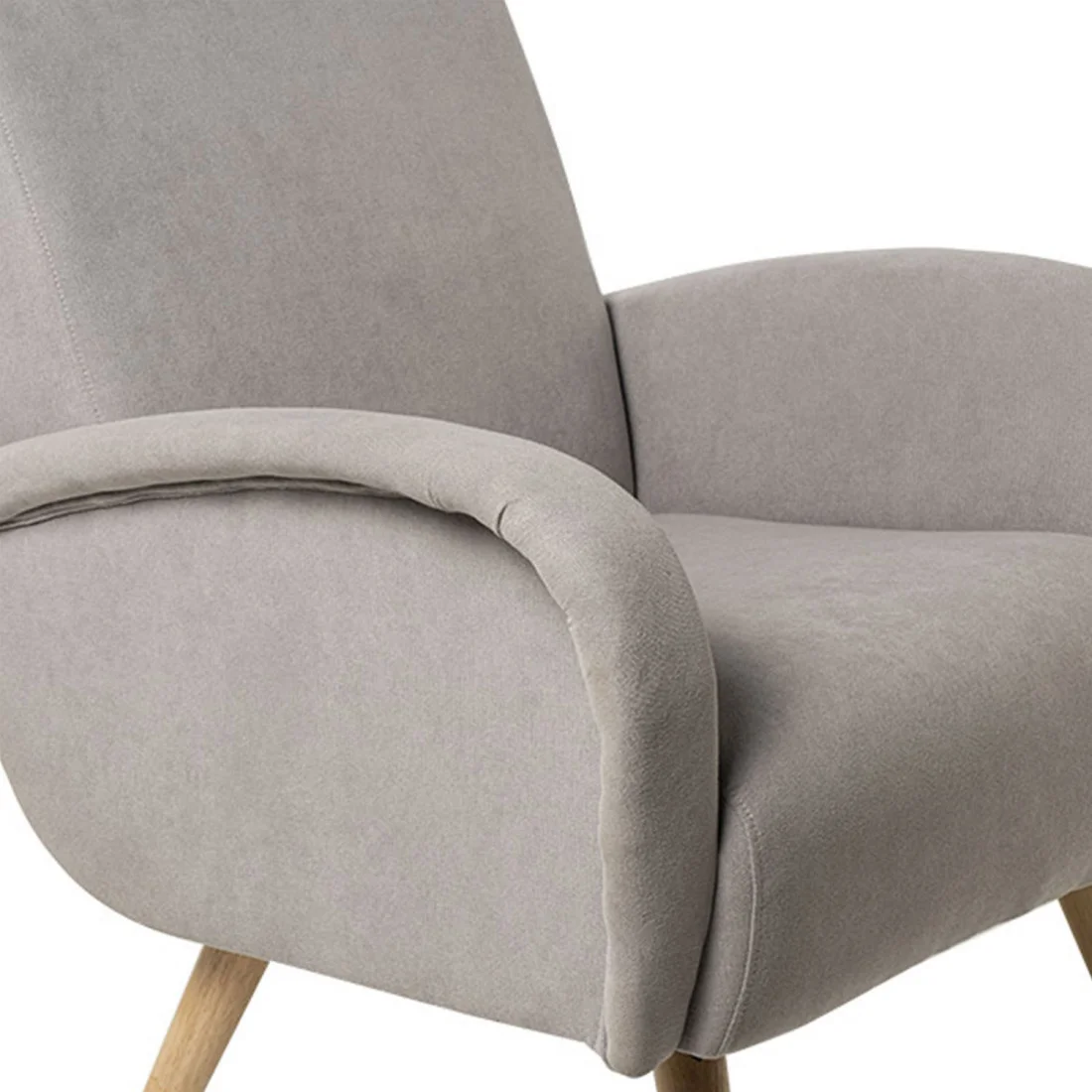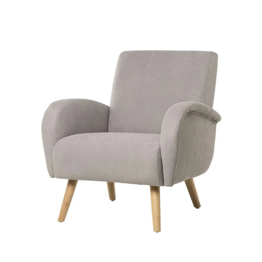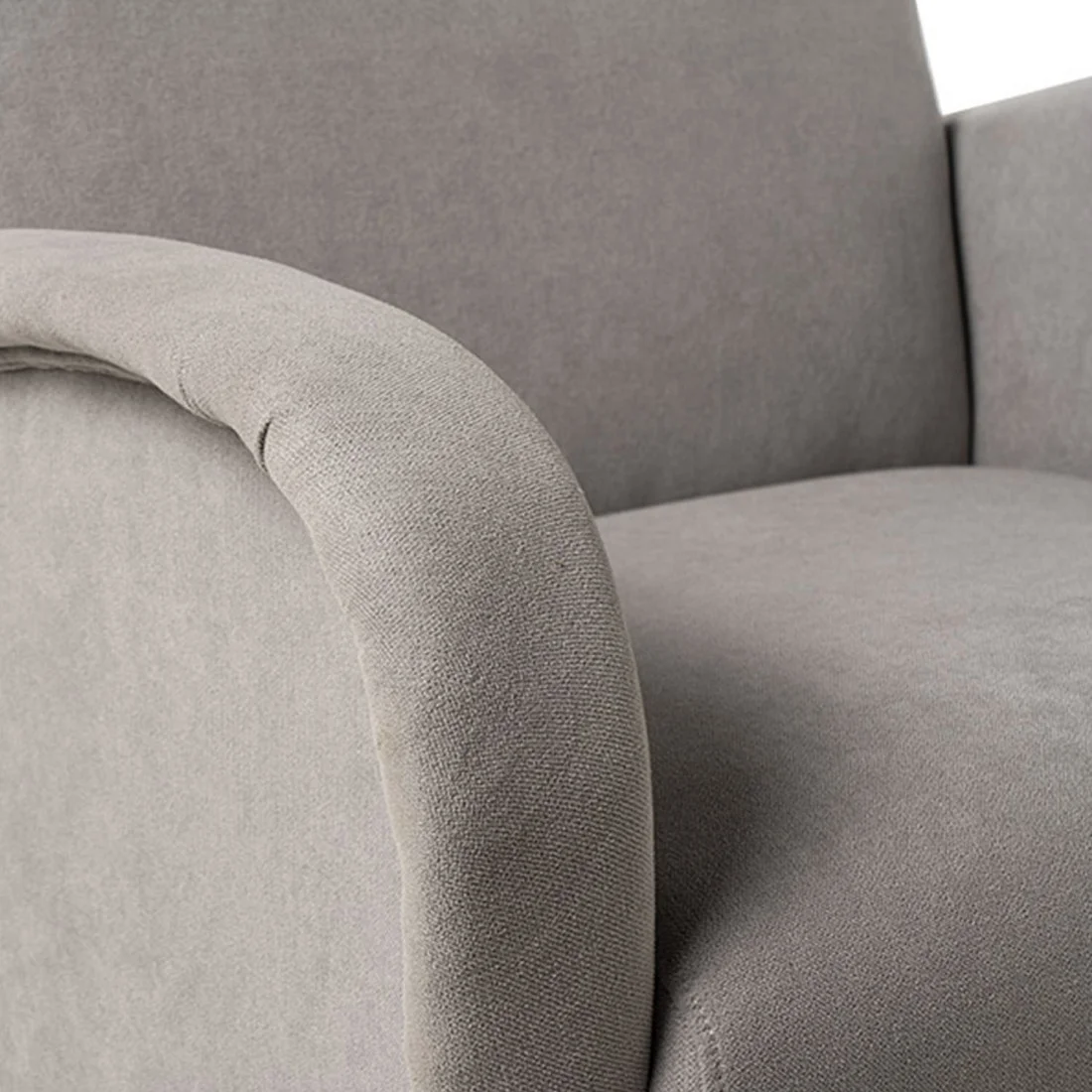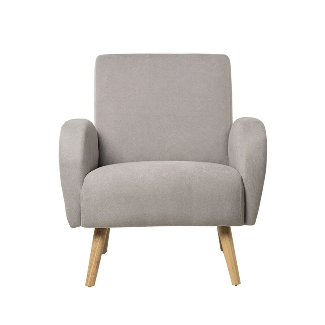 Tapizada en un tejido gris y de alta calidad, esta butaca ofrece un aire elegante y neutro, lo que la convierte en una opción versátil que se adapta fácilmente a estilos decorativos.
