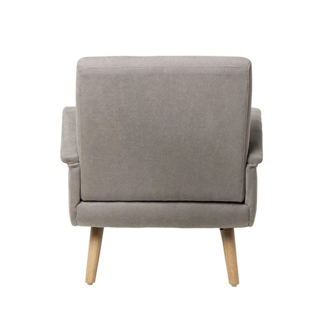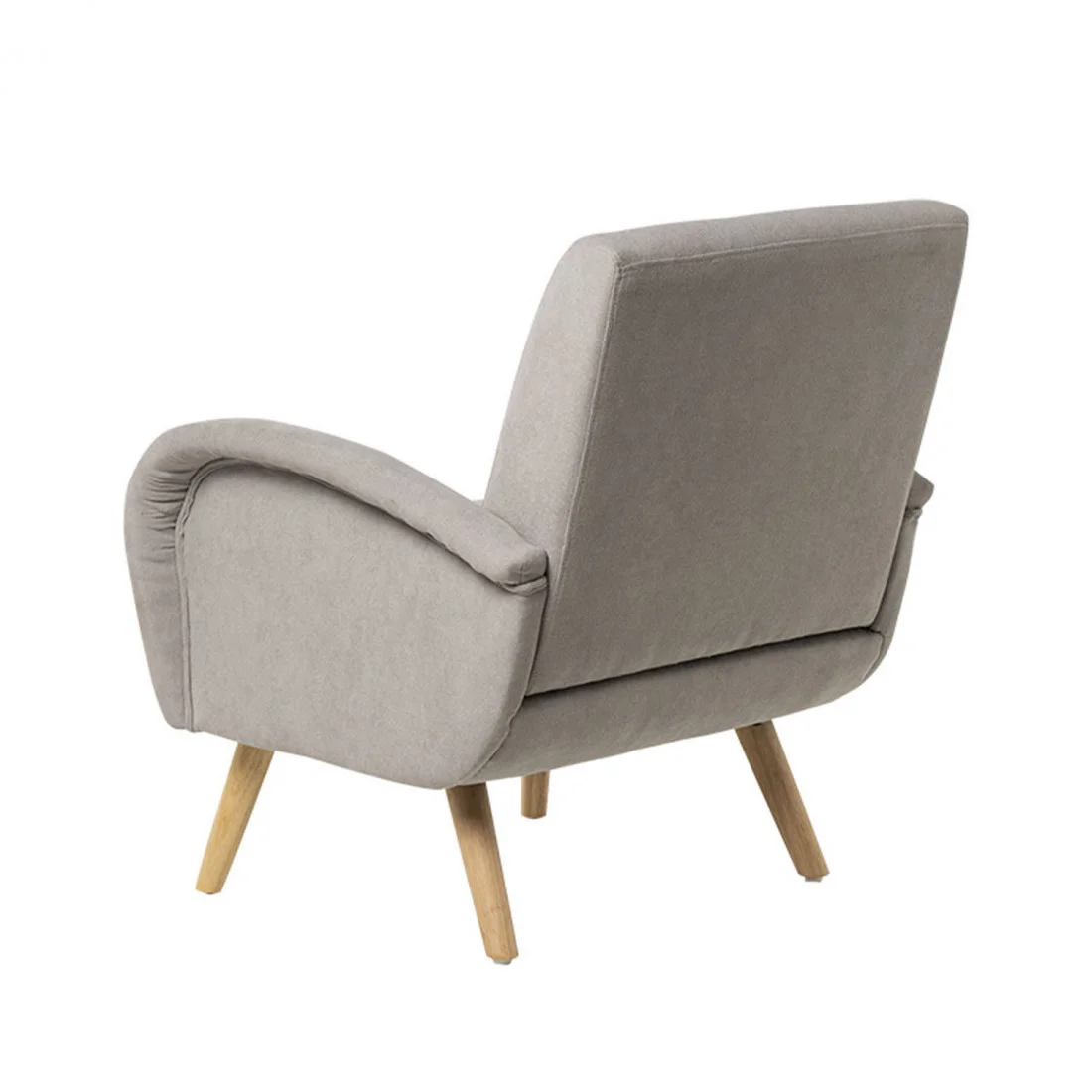 La butaca LISBOA está diseñada para aportar confort y estilo a cualquier espacio del hogar. Su estructura se apoya sobre patas de madera ligeramente inclinadas, con un acabado en color natural que resalta la calidez del diseño.