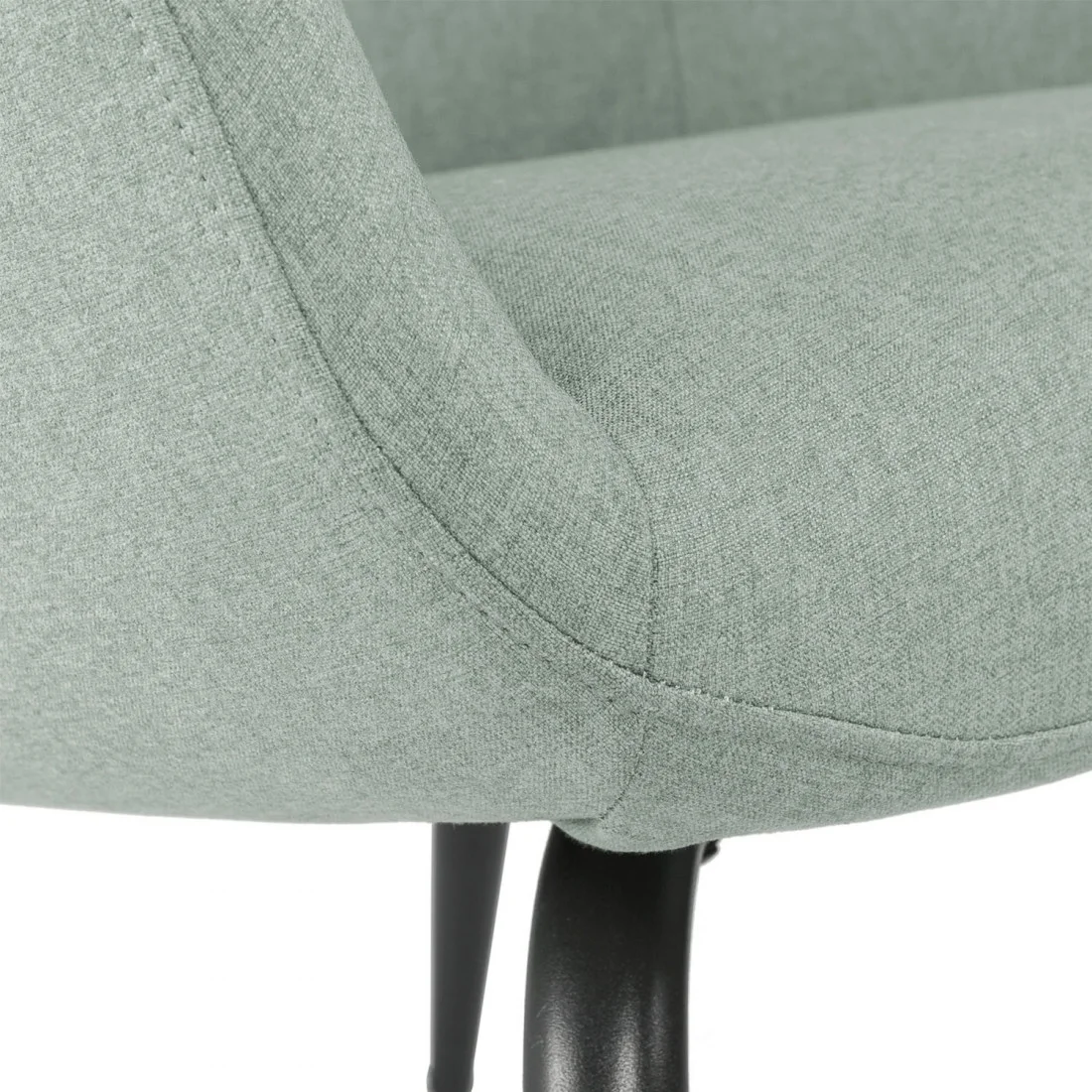 La estructura metálica interna asegura robustez y estabilidad, y sus patas de acero en color negro, discretamente estilizadas, aportan un toque moderno que contrasta con la suavidad del asiento. Su forma redondeada y envolvente proporciona una sensación de abrigo, ideal para largos momentos de relax.