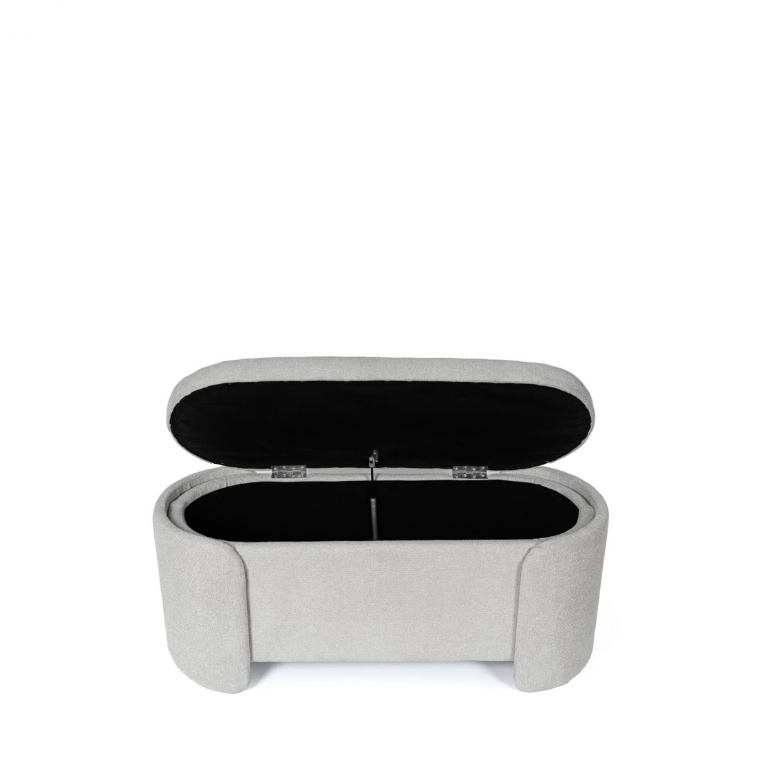 La forma compacta y elegante de BERNICE esconde en su interior un práctico espacio de almacenaje, perfecto para guardar mantas, cojines o pequeños objetos del día a día. Ya sea como banco para el pie de cama, asiento en recibidores o apoyo adicional en el salón, esta banqueta ofrece soluciones versátiles sin perder de vista el estilo.