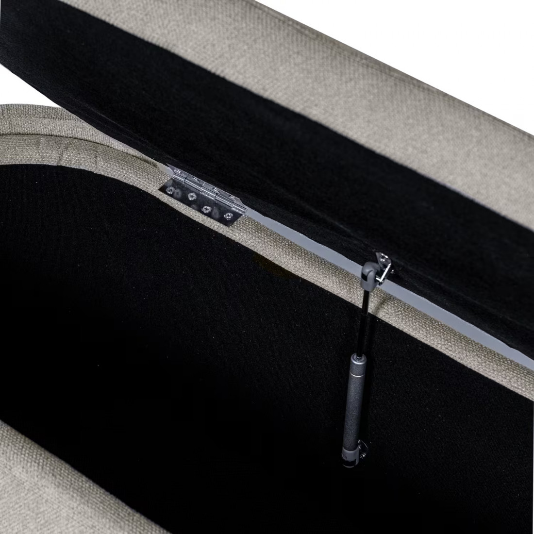 Su asiento tapizado esconde un práctico compartimento de almacenaje, ideal para guardar textiles, calzado o pequeños objetos del día a día.