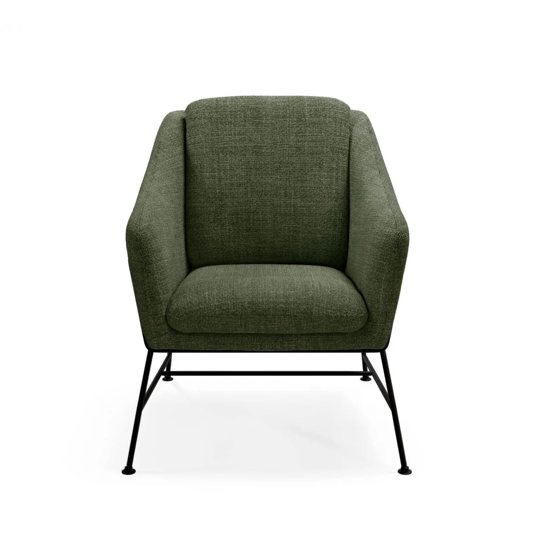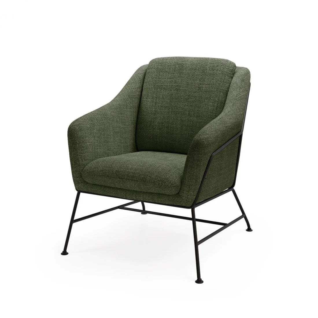 Su respaldo amplio y ligeramente curvado, crea una forma acogedora que abraza el cuerpo con suavidad. Todo ello reposa sobre patas metálicas negras, que contrastan con...