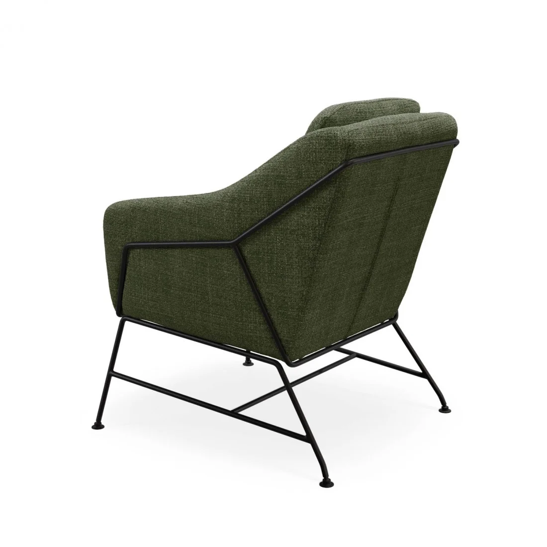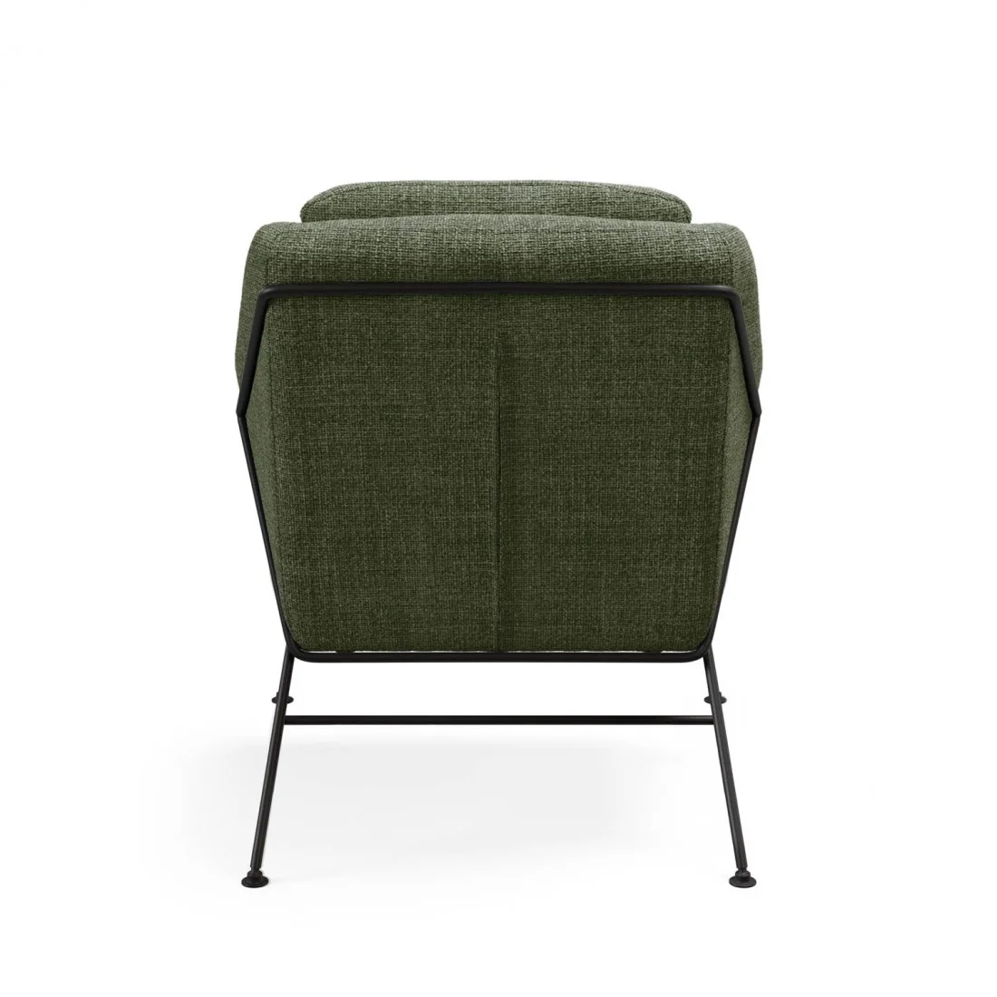 Las patas, fabricadas en resistente metal negro, crean un atractivo contraste con el resto del diseño, aportando un aire moderno y sofisticado. Además, su distintiva estructura metálica en la parte trasera añade un toque único y contemporáneo, convirtiéndola en una pieza que destaca en cualquier espacio.
