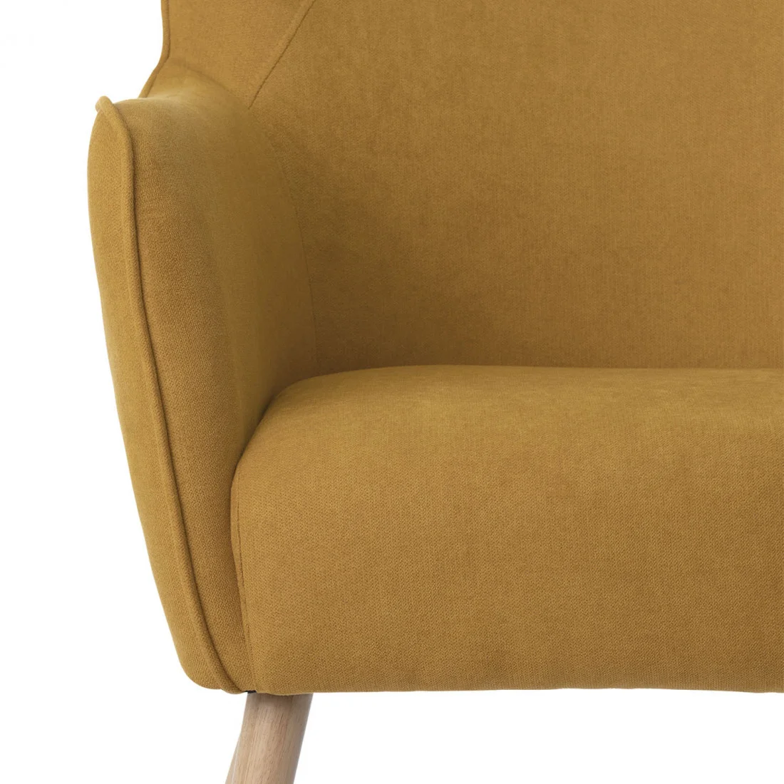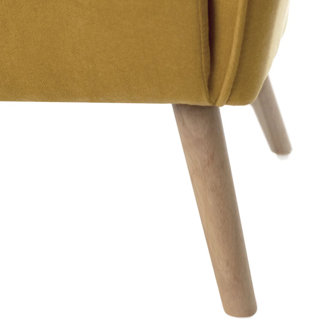 La butaca DOROTHY combina líneas suaves con un diseño vibrante que destaca en cualquier ambiente. Sus patas redondeadas de madera de hevea natural, con un diámetro de 5,5 cm, aportan no solo solidez estructural, sino también un aire cálido y orgánico que se integra a la perfección en espacios de estilo nórdico o japandi.