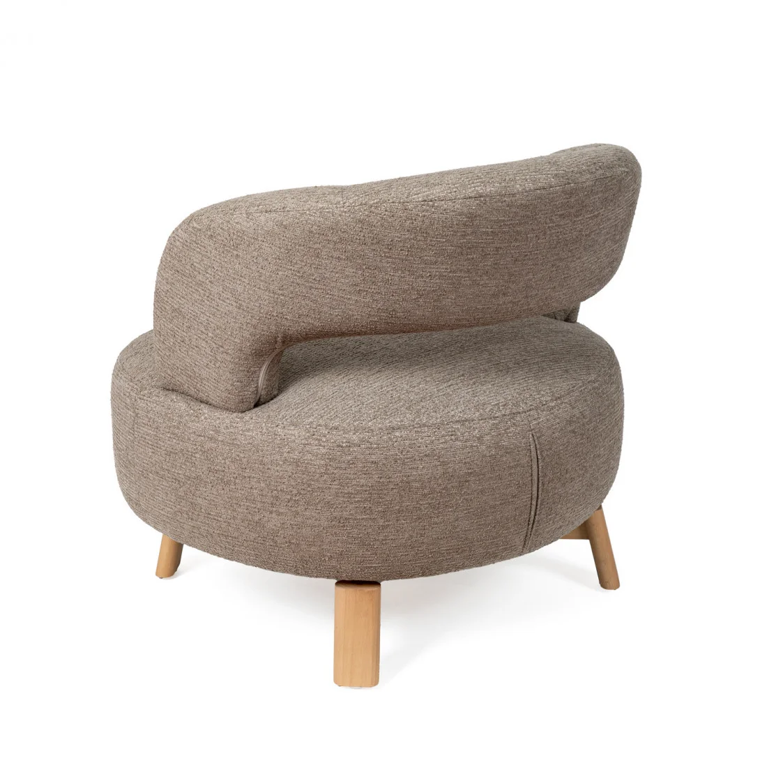 La butaca LISBOA está diseñada para aportar confort y estilo a cualquier espacio del hogar. Su estructura se apoya sobre patas de madera ligeramente inclinadas, con un acabado en color natural que resalta la calidez del diseño.