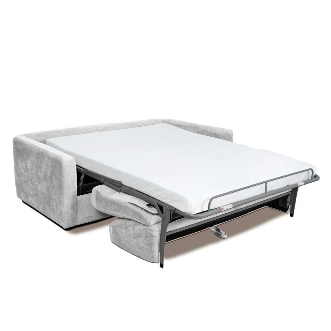El sofá cama MINATO destaca por su diseño acogedor y su estructura generosa, pensada para quienes valoran el confort absoluto sin renunciar a un estilo elegante y atemporal. Cuenta con un sistema de apertura italiano, lo que garantiza facilidad de uso y fiabilidad en el mecanismo.