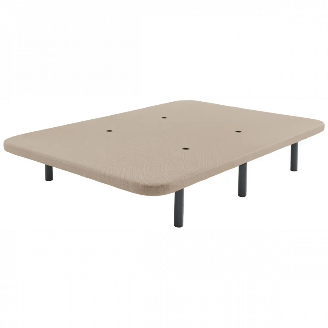 La base tapizada ofrece un descanso muy estable gracias a su tapizado uniforme. Su estructura otorga a la base tapizada una correcta sustentación del colchón y ofrece un descanso sin ruidos, manteniendo un gran confort durante el descanso. Destaca su estética y diseño al estar tapizado en un tejido 3d color beig. Posee cuatro válvulas de aireación que facilitarán la transpiración. INCLUYE JUEGO DE 6 PATAS.