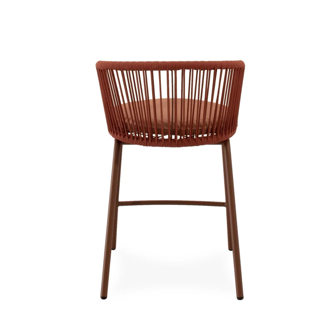 Las patas de acero especialmente acondicionado para exteriores, añaden estabilidad y un toque moderno, mientras que el asiento acolchado en poliéster proporciona el confort necesario para largas tertulias al aire libre.