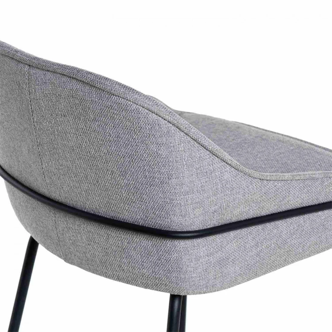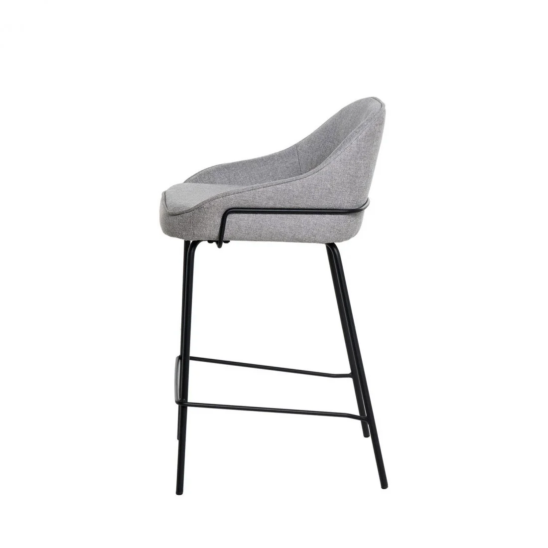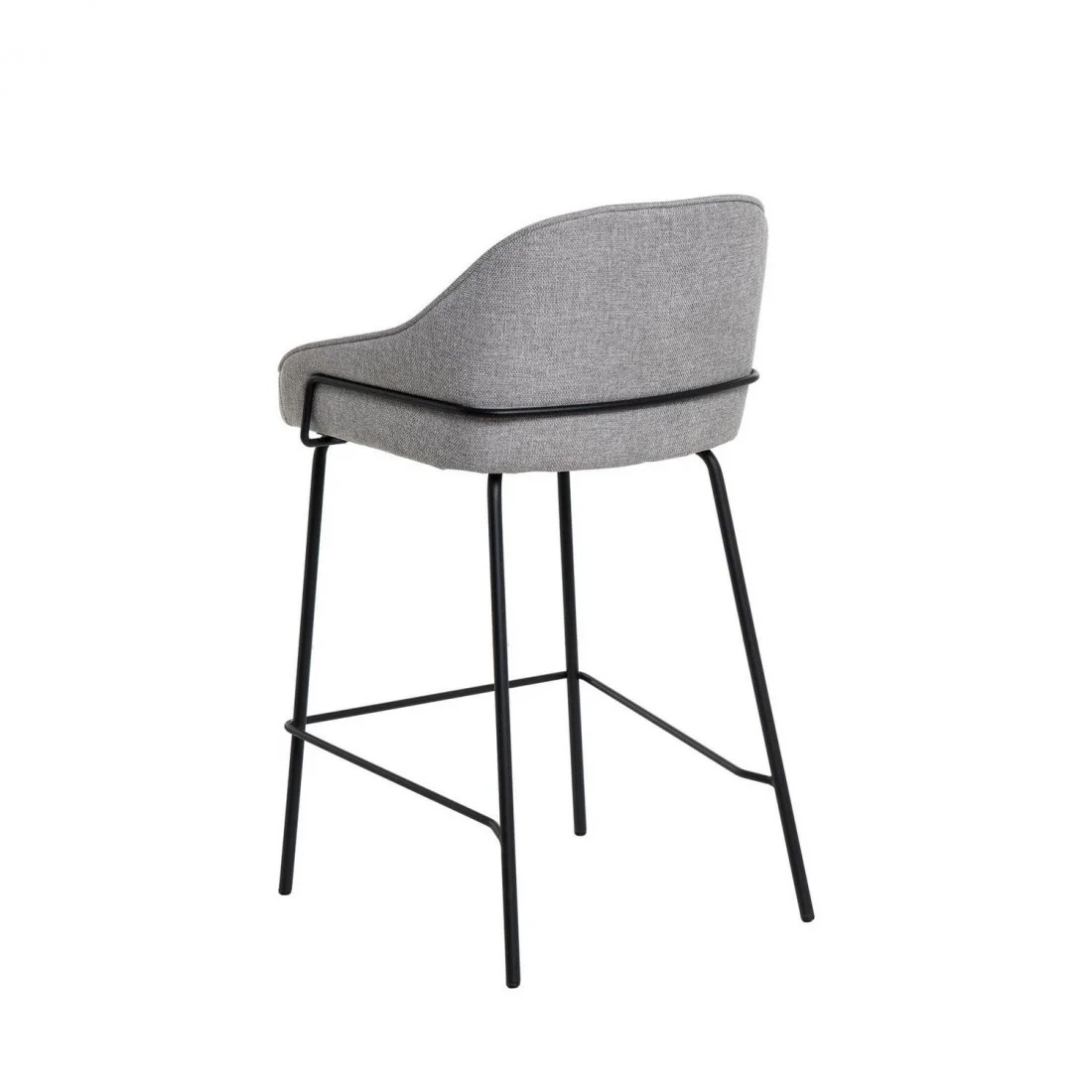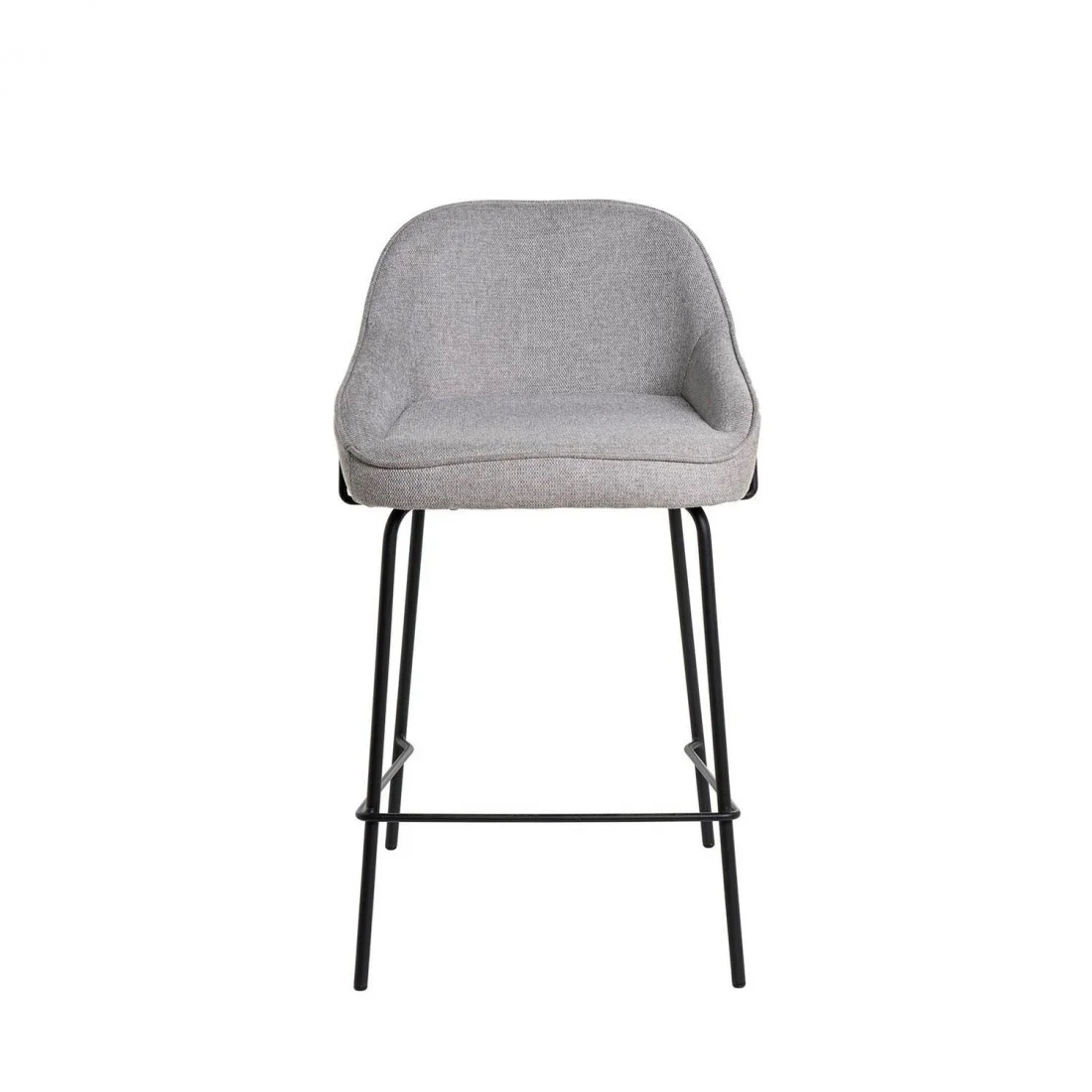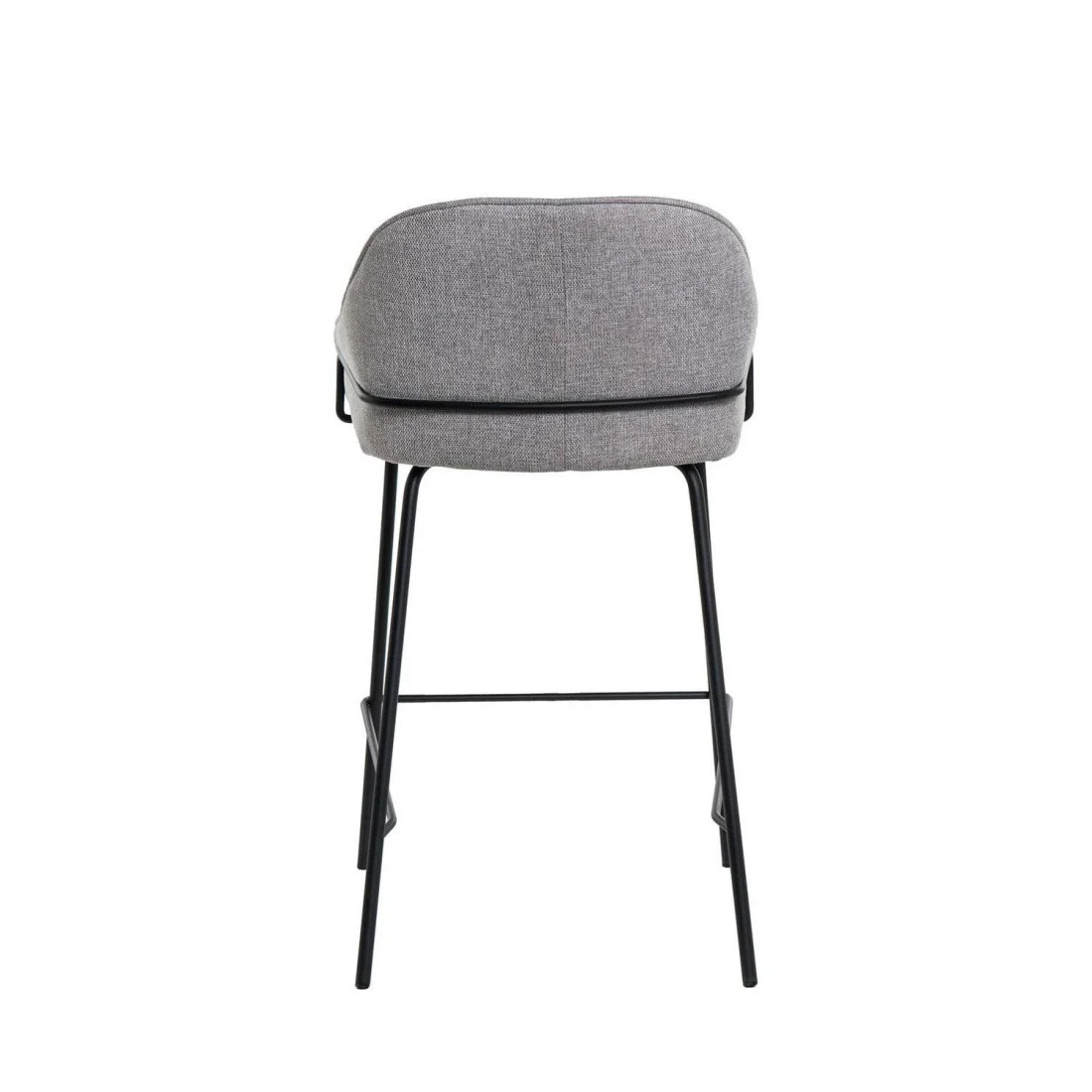 Tapizado en un elegante tejido gris 100% poliéster, y con un distintivo agujero entre el respaldo y el asiento, este taburete ofrece un diseño único y peculiar.