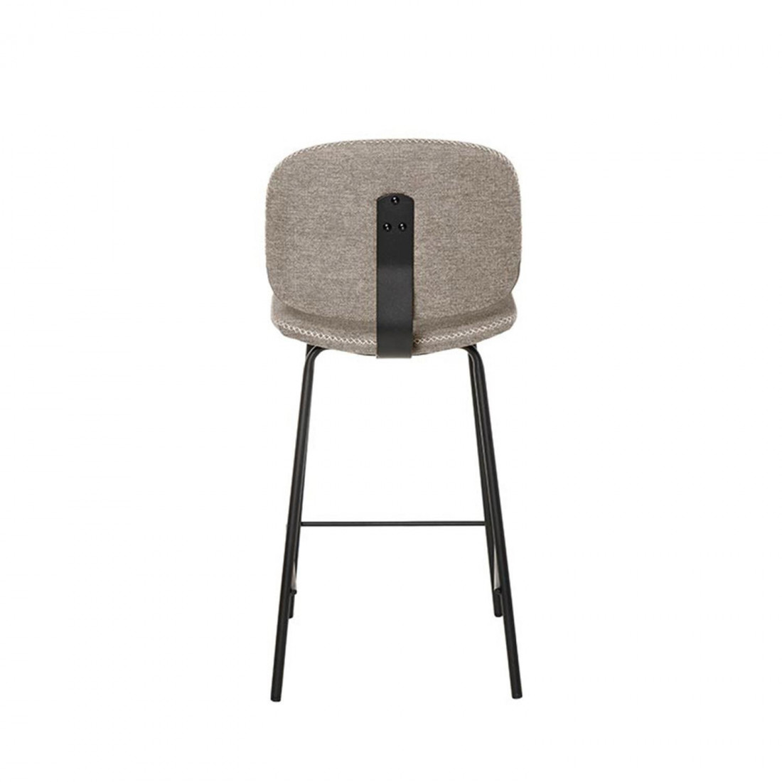 El respaldo del taburete bajo AUSTIN está compuesto por una lámina de chapa de madera en su parte externa, que se combina perfectamente con el soporte metálico negro.
