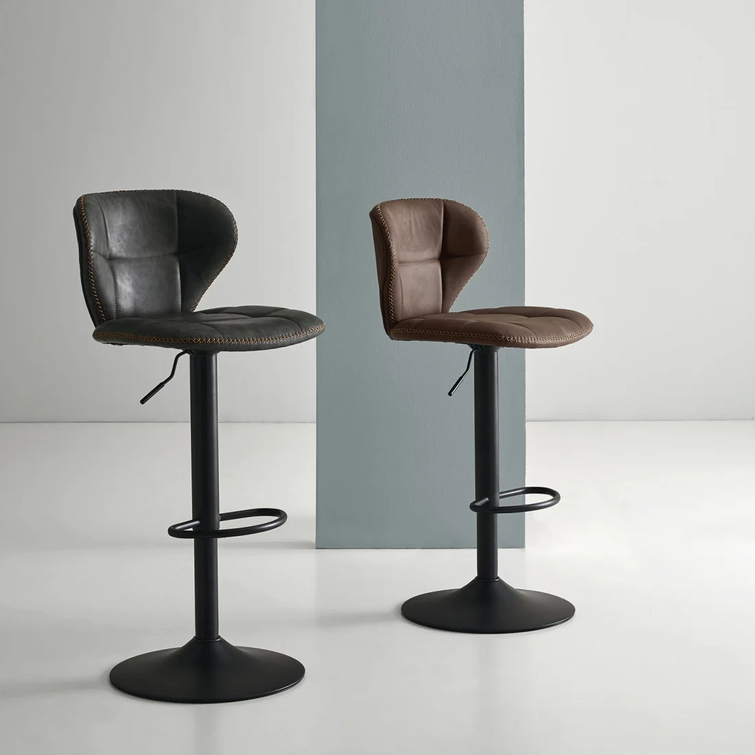 El taburete NELLY destaca por su elegante y robusto soporte de pies cromado. Su sistema de elevación por pistón y la capacidad de giro de 360º lo convierten en una pieza extremadamente útil y funcional.