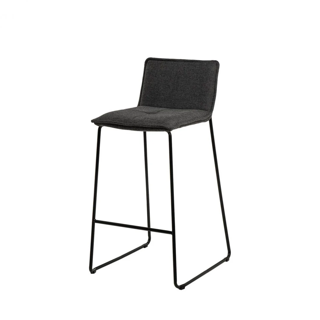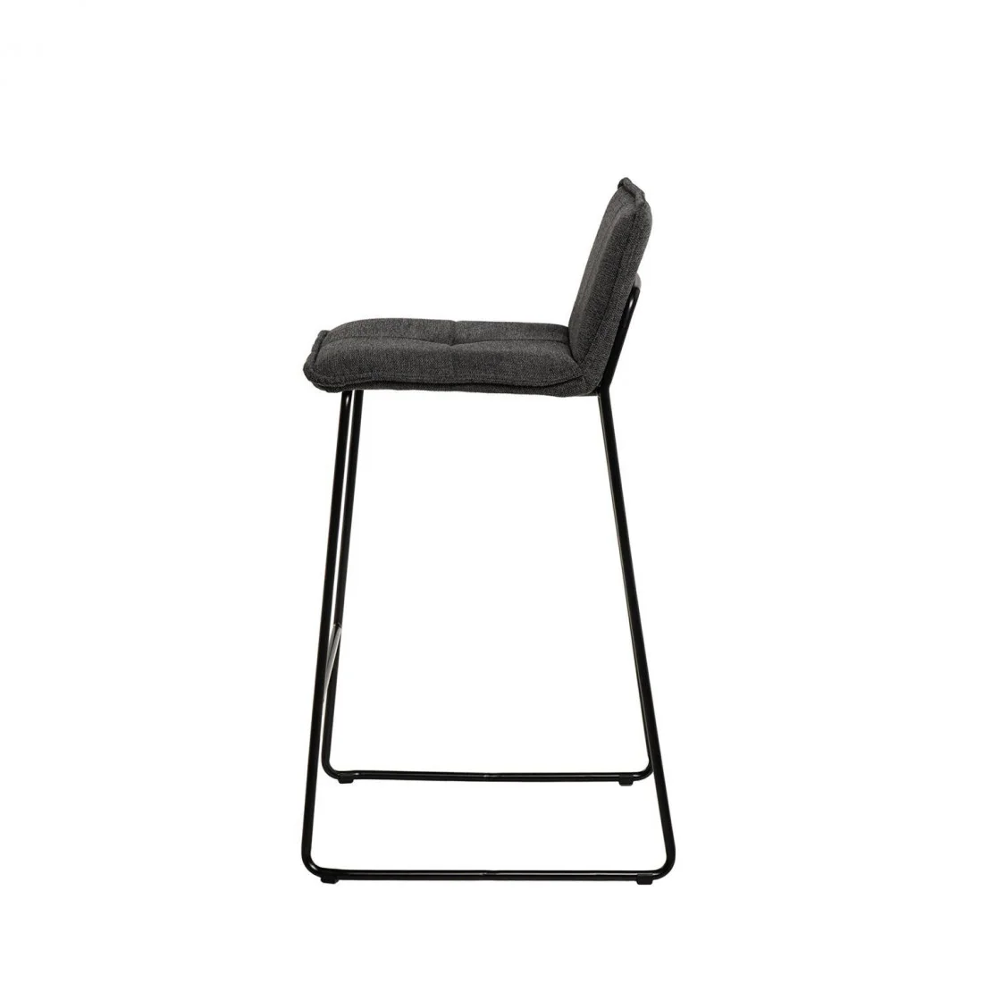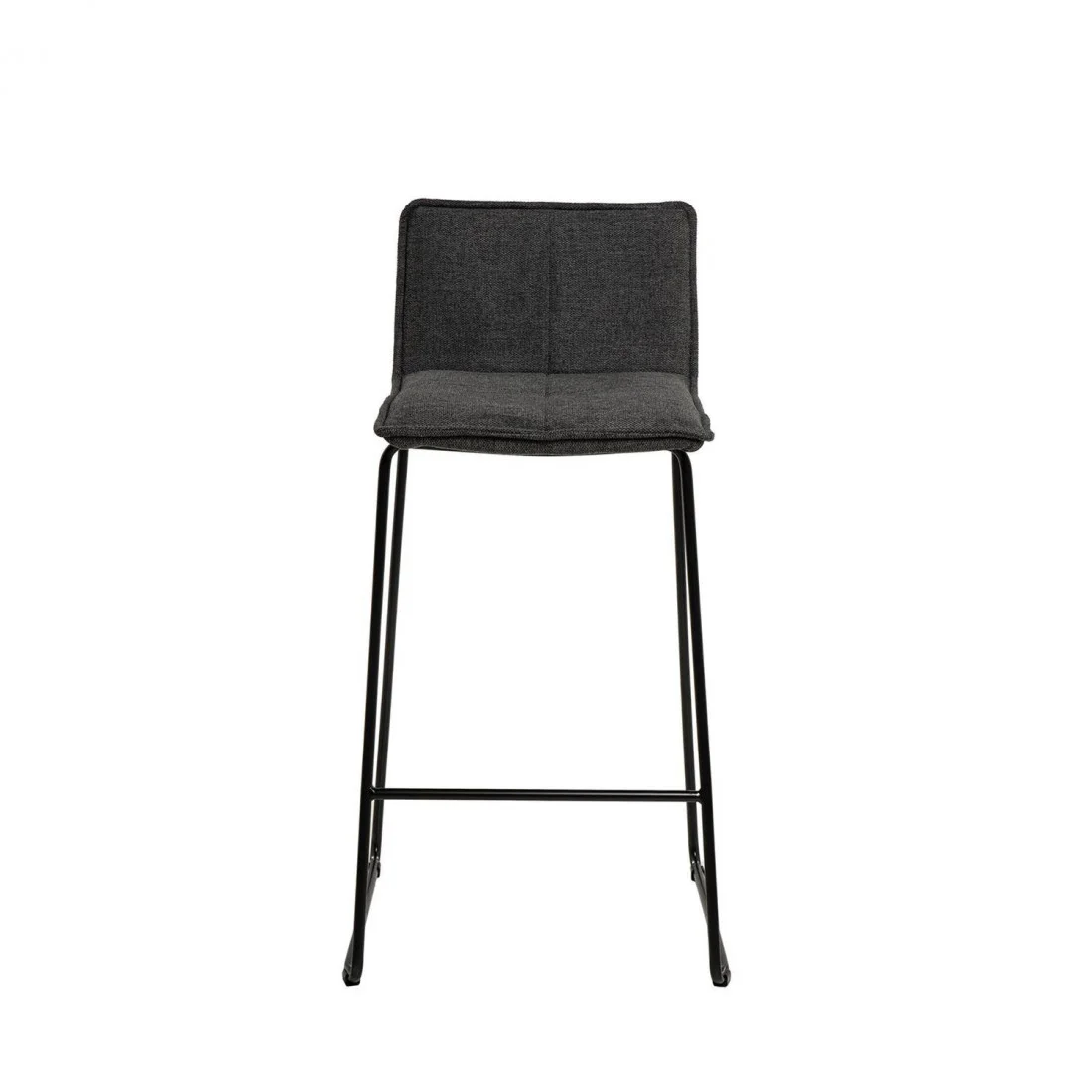 Su estructura cuenta con robustas patas de metal que garantizan estabilidad y durabilidad, junto con un tapizado de tela en color gris oscuro (100% poliéster).
