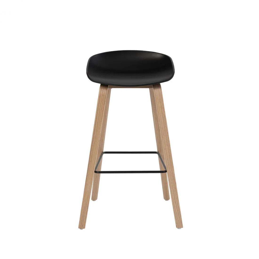 El taburete BARRET destaca por su estilo y funcionalidad. Combina una estructura metálica en color blanco con un asiento de madera, creando un diseño moderno y elegante.