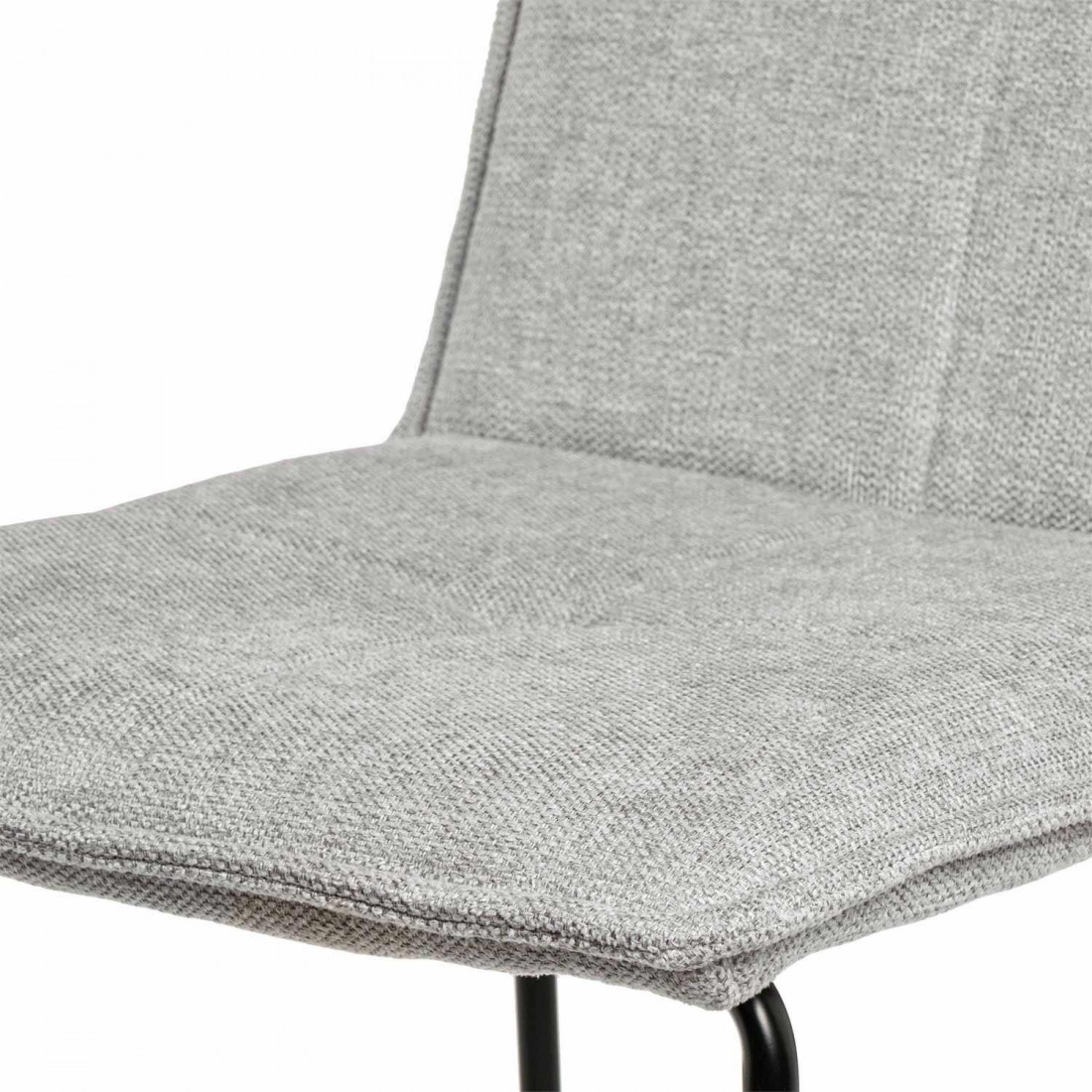 Su estructura cuenta con robustas patas de metal que garantizan estabilidad y durabilidad, junto con un tapizado de tela en color gris claro (100% poliéster).