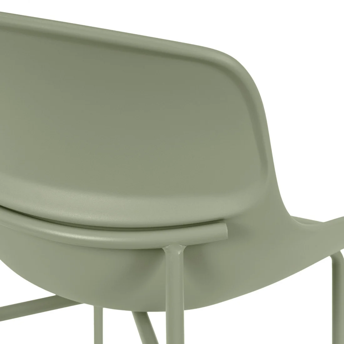 El asiento y el respaldo están tapizados en polipiel gris, con costuras visibles que añaden un toque de estilo adicional....