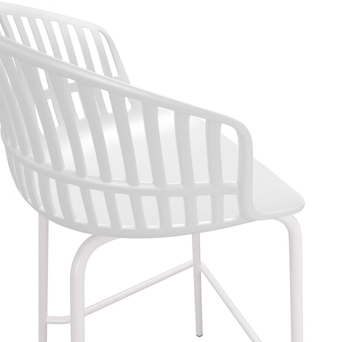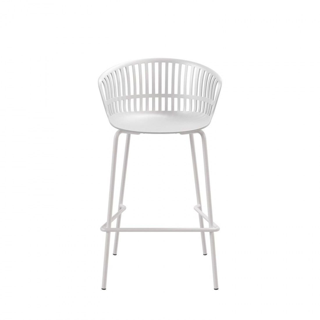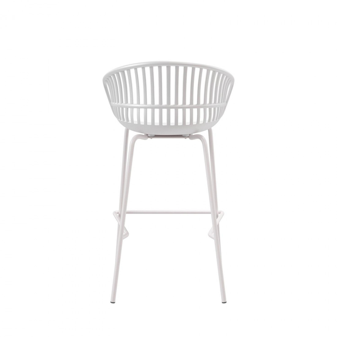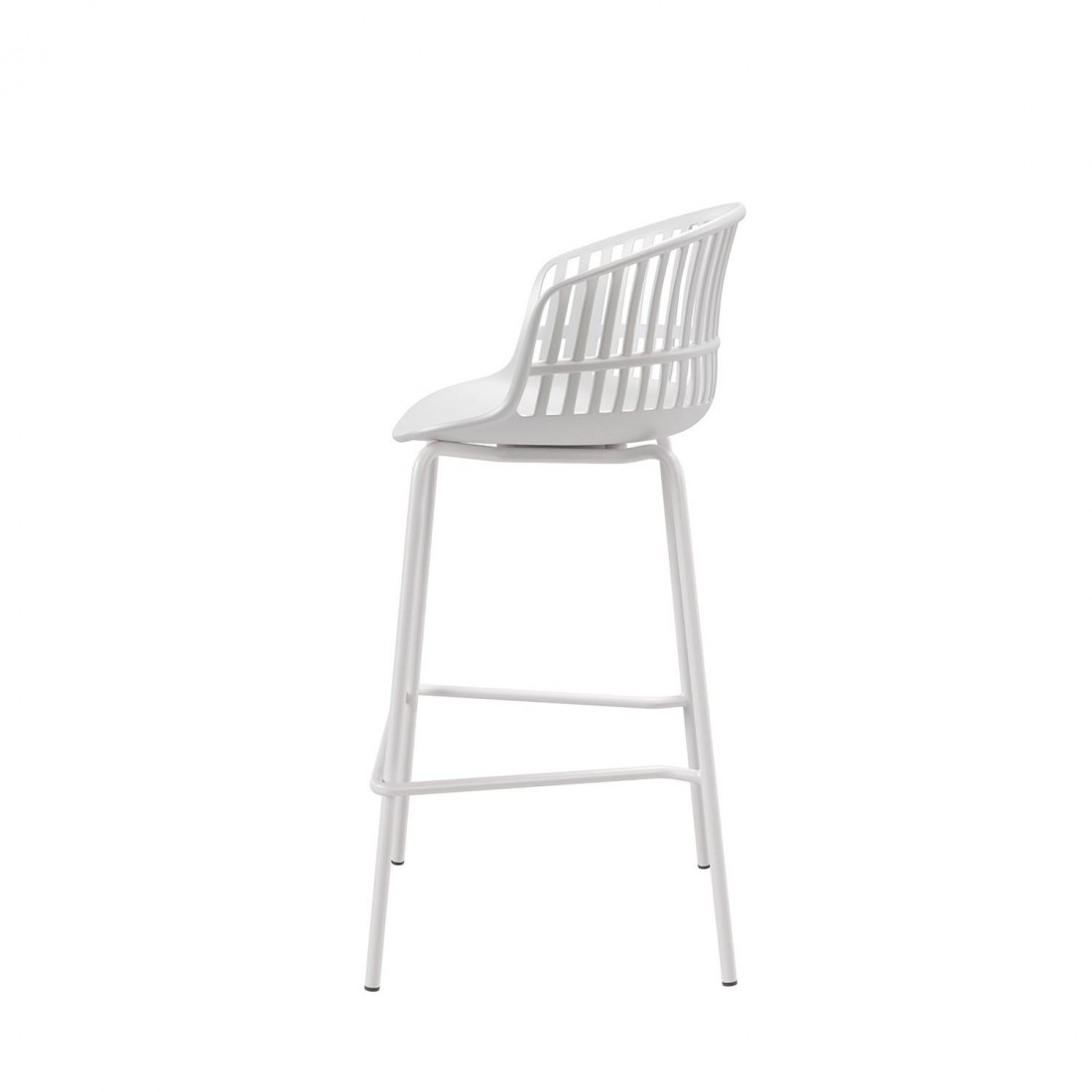 El taburete BARRET destaca por su estilo y funcionalidad. Combina una estructura metálica en color blanco con un asiento de madera, creando un diseño moderno y elegante.