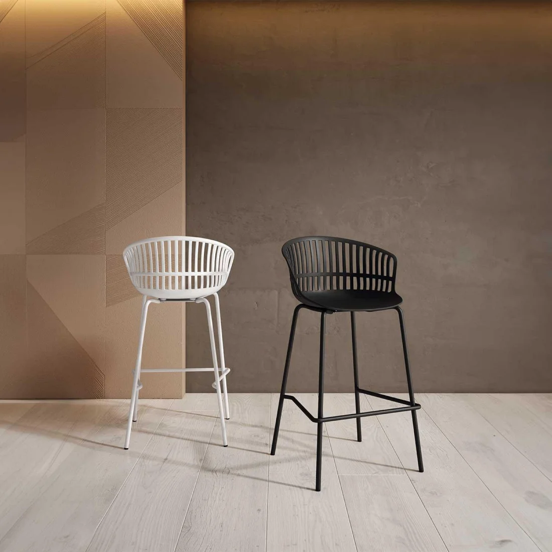 Este taburete alto es ideal para cocinas o bares, gracias a su diseño minimalista y elegante.