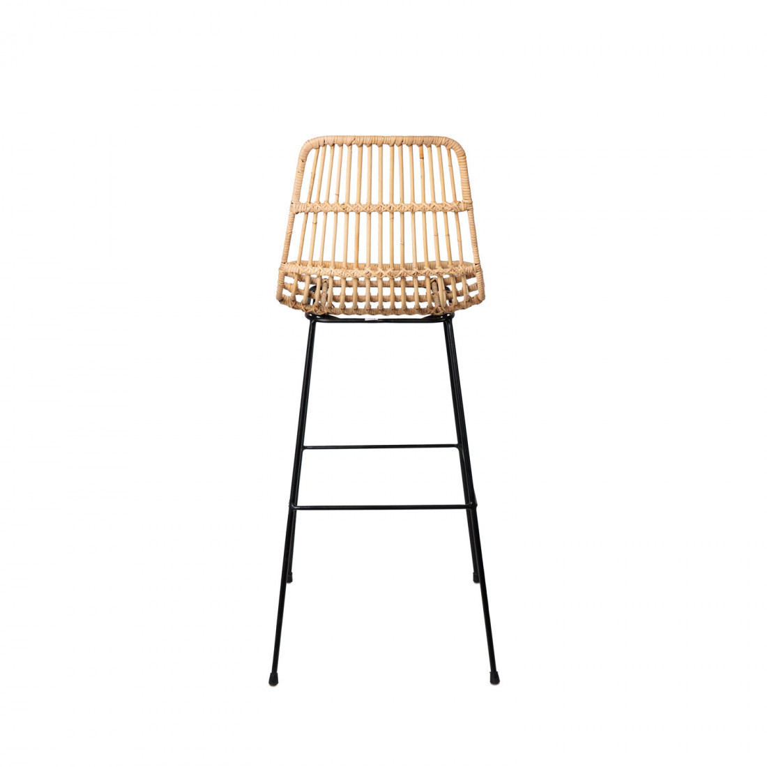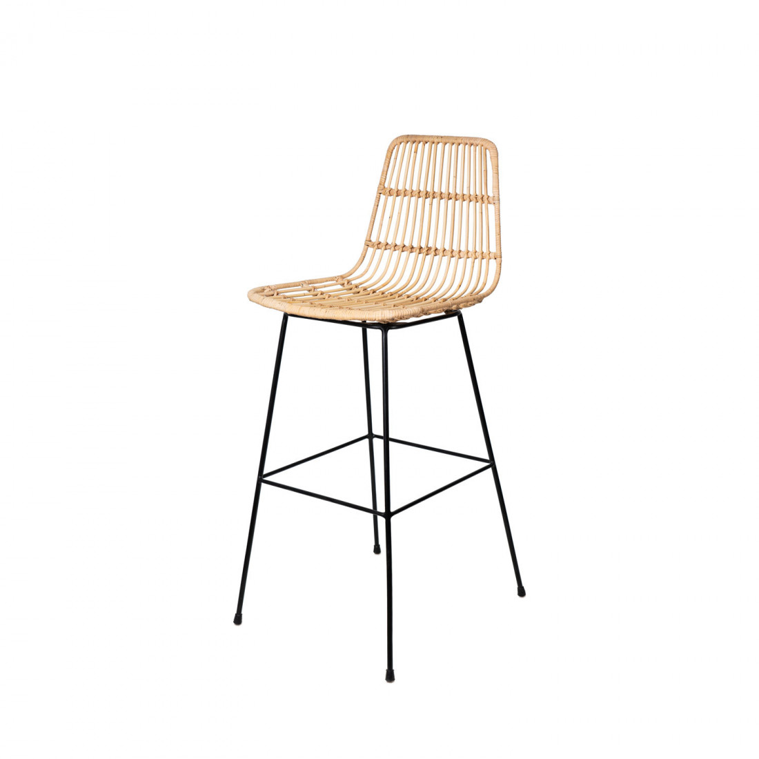 Su asiento de ratán trenzado, en tonos cálidos y acogedores, aporta un toque artesanal y una textura envolvente, mientras que su estructura de hierro negro proporciona un aire sofisticado que se adapta con facilidad a distintos entornos como el boho, el nórdico, el industrial o el rústico.