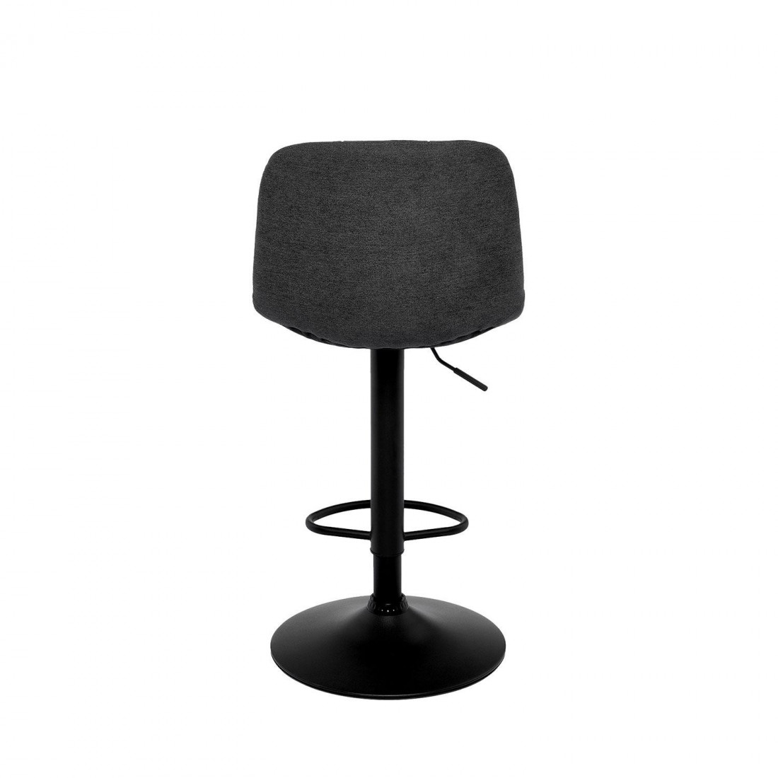 Tapizado en un elegante gris de poliéster 100%, y con patas y barras traseras/laterales de metal negro, este taburete destaca por su diseño sofisticado, ideal para entornos modernos.