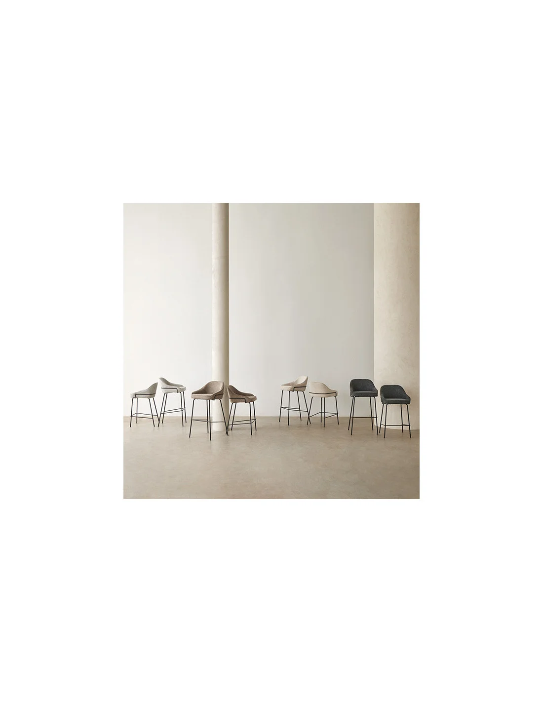 El taburete alto LOUIS se distingue por la integración de su respaldo con los reposabrazos, ofreciendo una comodidad y soporte adicionales que lo hacen perfecto para largas sesiones de uso.