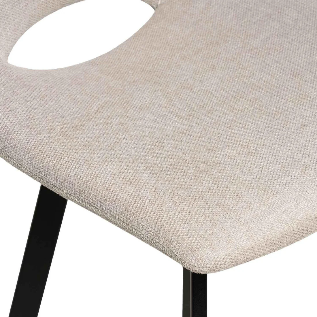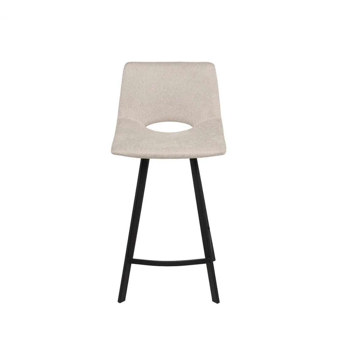 Tapizado en un elegante tejido beige 100% poliéster, y con un distintivo agujero entre el respaldo y el asiento, este taburete ofrece un diseño único y peculiar.