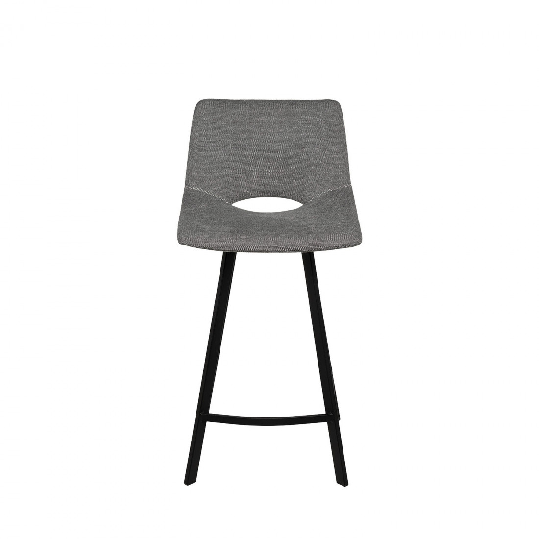 Tapizado en un elegante tejido gris oscuro 100% poliéster, y con un distintivo agujero entre el respaldo y el asiento, este taburete ofrece un diseño único y peculiar.