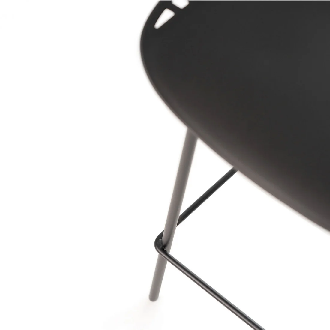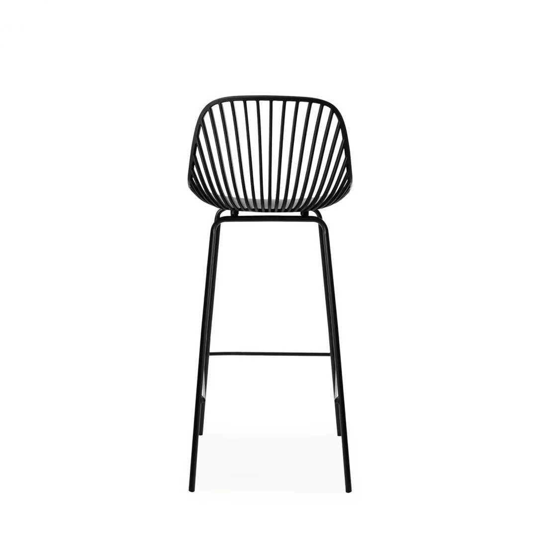 Sus patas, de metal lacado en mate, incluyen un reposapiés que proporciona mayor estabilidad y comodidad.