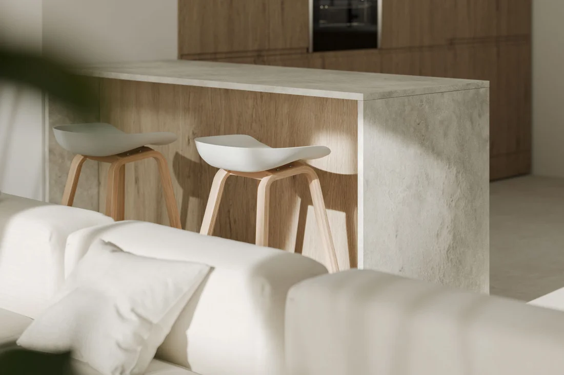 El taburete bajo RUTH destaca por su diseño sencillo pero moderno.